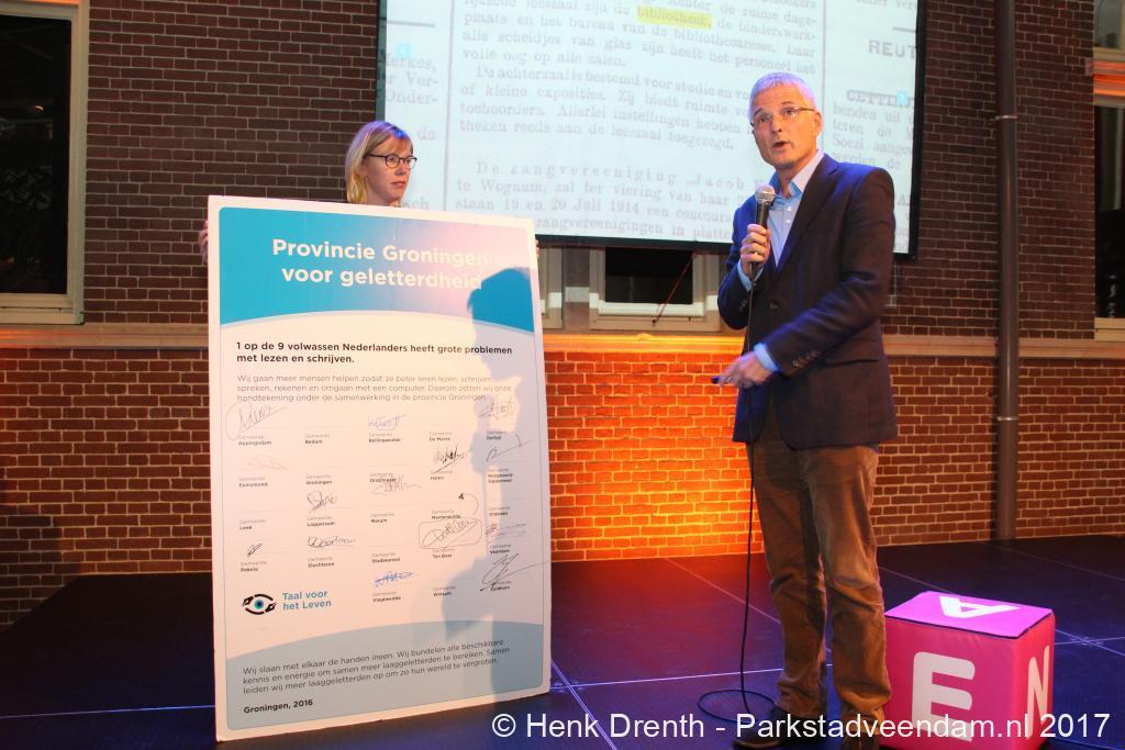 Het ondertekenen van het Taalakkoord heeft deze opening extra speciaal gemaakt. Hiermee de heeft de gemeente Veendam de afspraak bevestigt om laaggeletterdheid bij volwassenen aan te pakken. Het Taalhuis in Bibliotheek Veendam is de plek waar alle hulp samenkomt voor inwoners die moeite hebben met lezen en schrijven. Het Taalhuis kan bestaan dankzij de samenwerking tussen de gemeente Veendam, Compaen, Stichting Lezen & Schrijven, Noorderpoort en Biblionet Groningen.