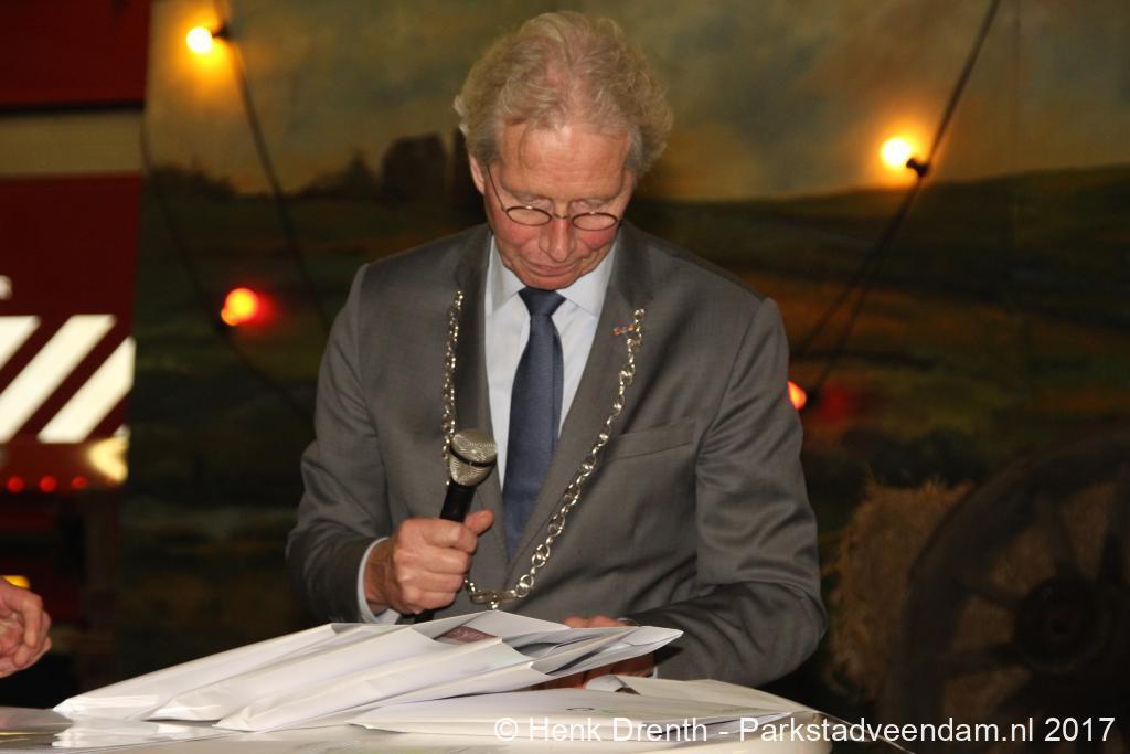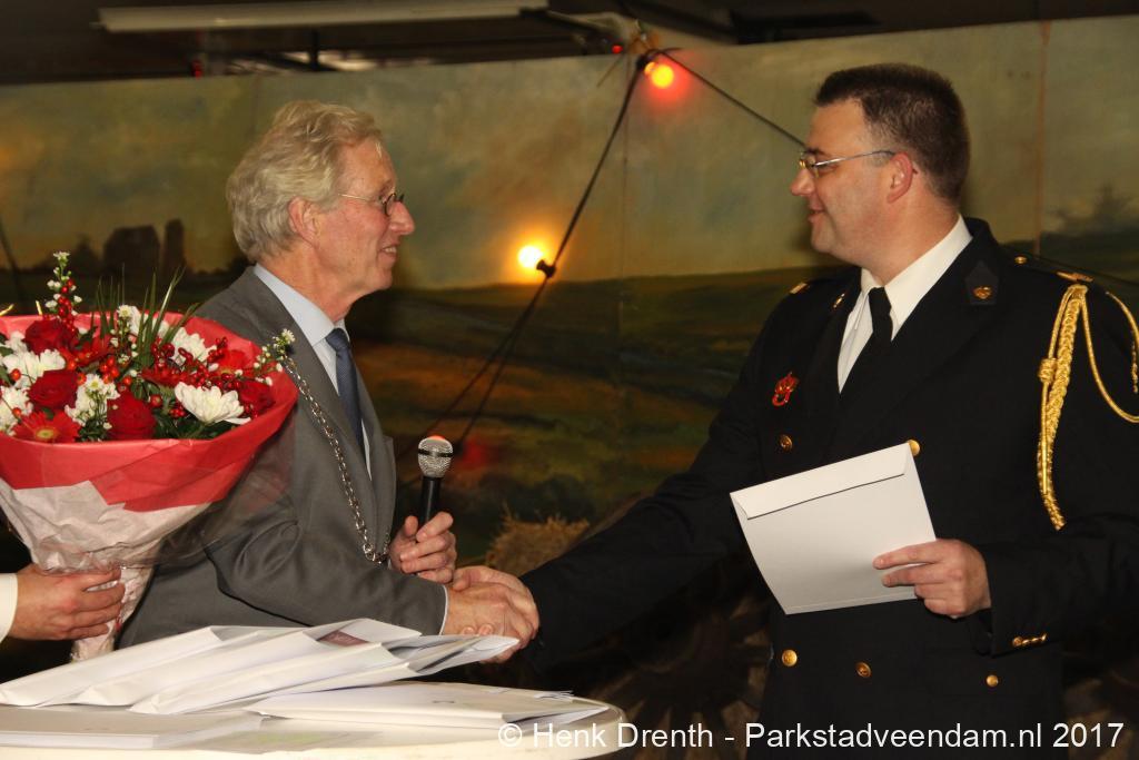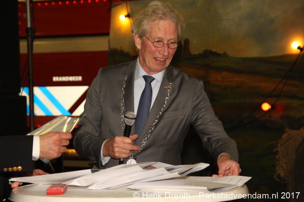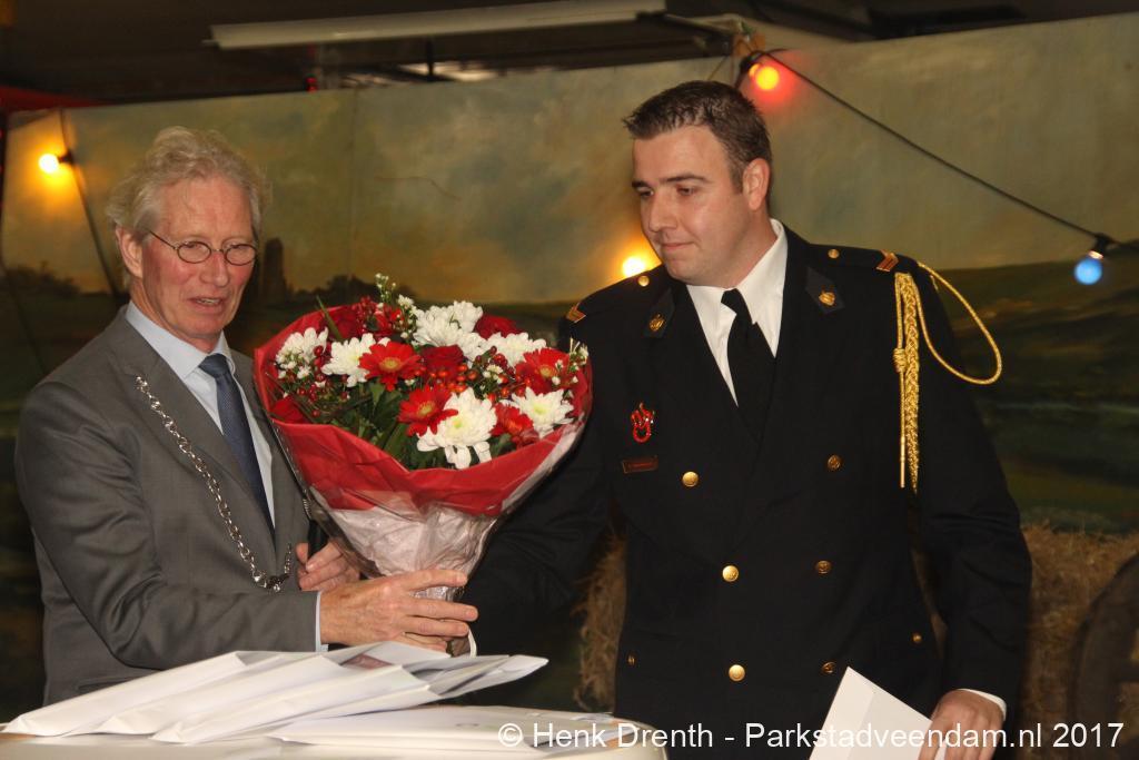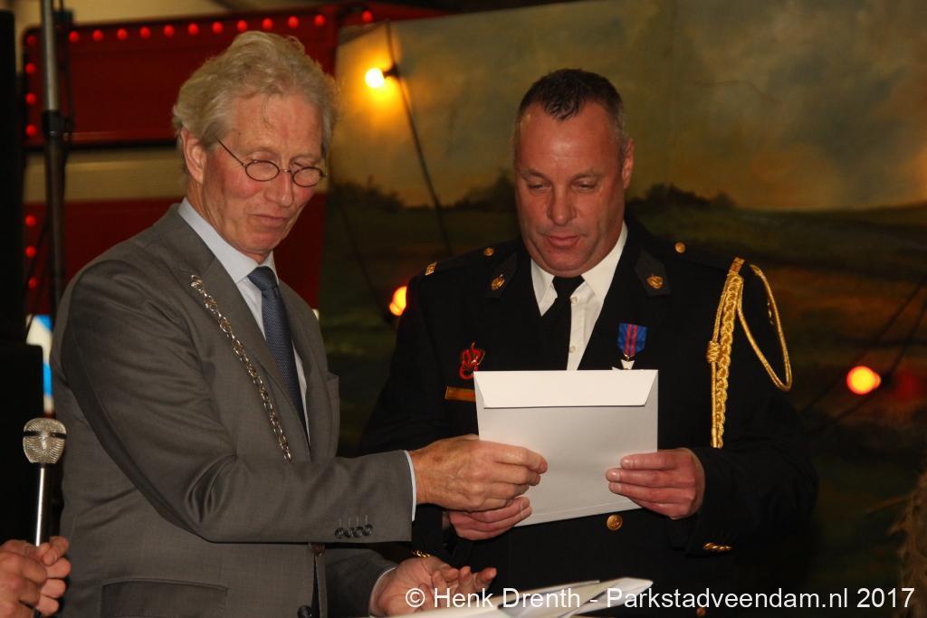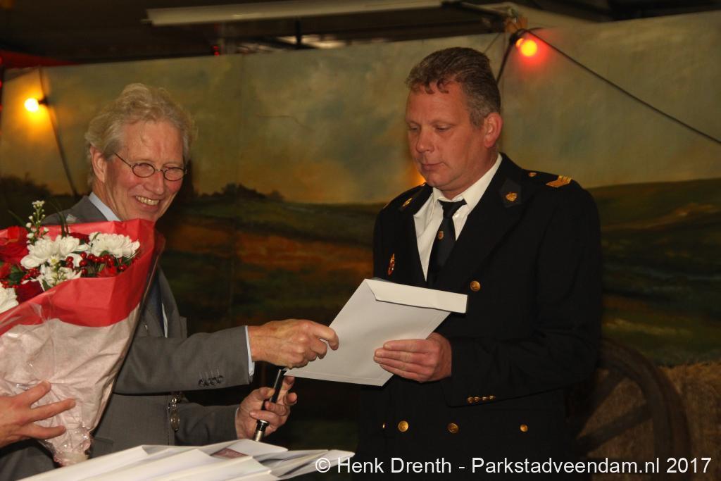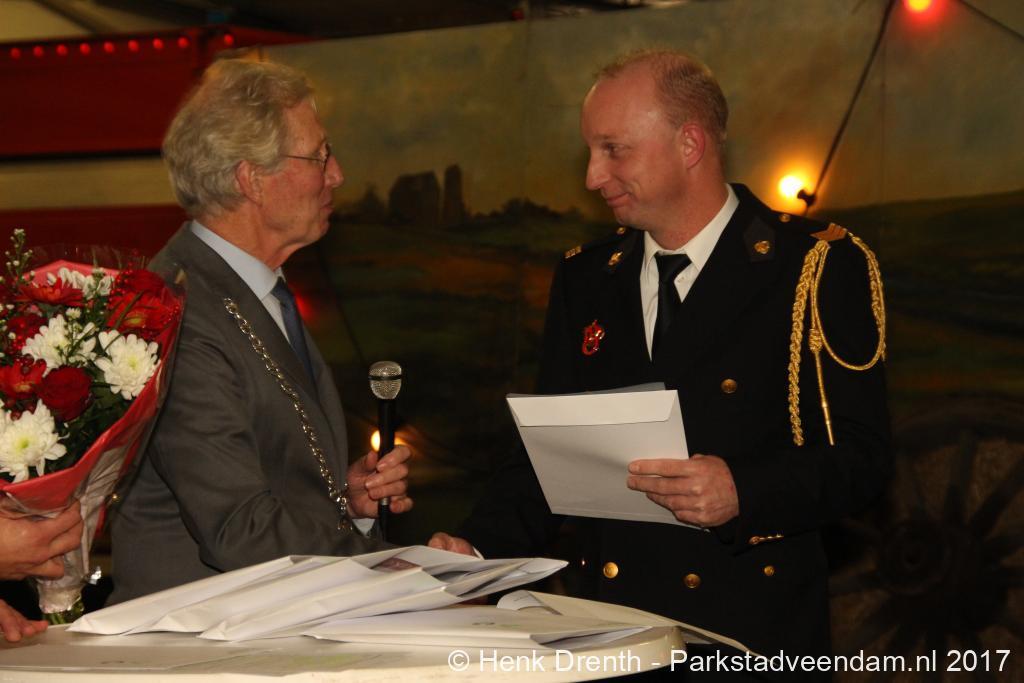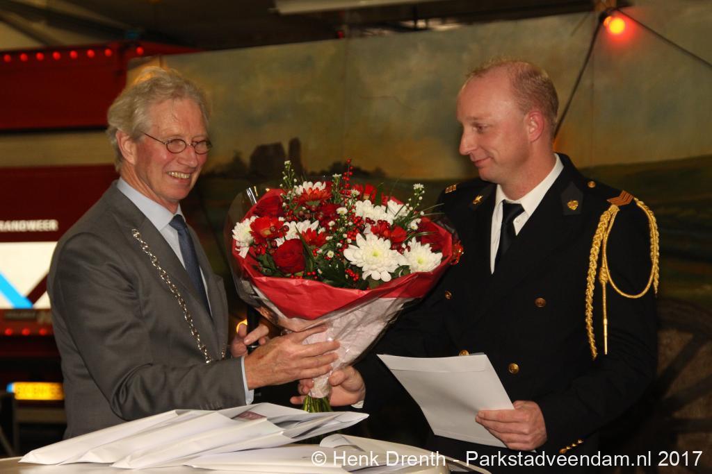 De gehuldigde jubilarissen zijn Richard Lubben ( voor 25 jaar brandweerdienst), Henk Hofman (30 jaar), Marcel Jalving (30 jaar), Peter Schoonbeek (30 jaar), Jan Vedder (30 jaar), Erik Jannenga (35 jaar) en Engel-Jan Roelfsema (40 jaar brandweerdienst). Zij ontvingen van de burgemeester een brandweeroorkonde, dat vergezeld ging met een grote bos bloemen.