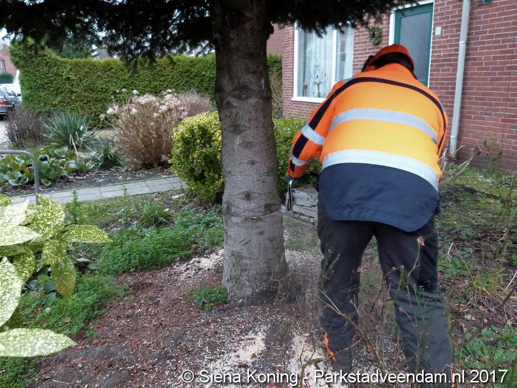 Nadat haar man overleden was, dacht mevrouw Kuiper-Bakker er over om de boom uit haar tuin te laten verwijderen. 'Ik was in enorme tweestrijd want er zitten veel herinneringen aan de boom maar hij ontneemt wel veel licht, nu hij steeds groter wordt maar er zouden ook problemen in de buurt kunnen ontstaan met de riolering en leidingen omdat de boom steeds meer wortels gaat zetten'. Uiteindelijk werd de knoop door gehakt om de Spar te laten verwijderen.