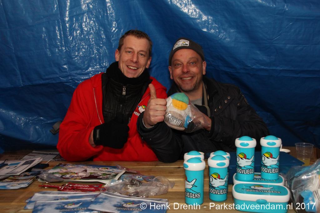 David Slomp en Pieter Woldhuis van de Stichting Hoogvliegers, het hoofddoel van de goede doelenactie, waren met informatiemateriaal aanwezig. “Stichting Hoogvliegers zorgt ervoor dat terminaal zieke kinderen en gehandicapten voor een dag zelf piloot zijn”, verteld David. “Ze mogen in de cockpit zelf vliegen. Iedereen werkt op zo’n dag mee voor de kinderen, van de douane, de brandweer, politie, tot de vrachtwagenchauffeur. Vliegsimulator, vliegtuig en de patatkraam wordt voor deze kinderen en hun familie ingezet. Per jaar worden 15 vluchten vanaf de vliegvelden in Nederland georganiseerd. Die voor de kinderen en familie volledig kosteloos zijn. Dankzij giften, donaties en ook door eigen shoppings van onszelf wordt dit mogelijk gemaakt”.