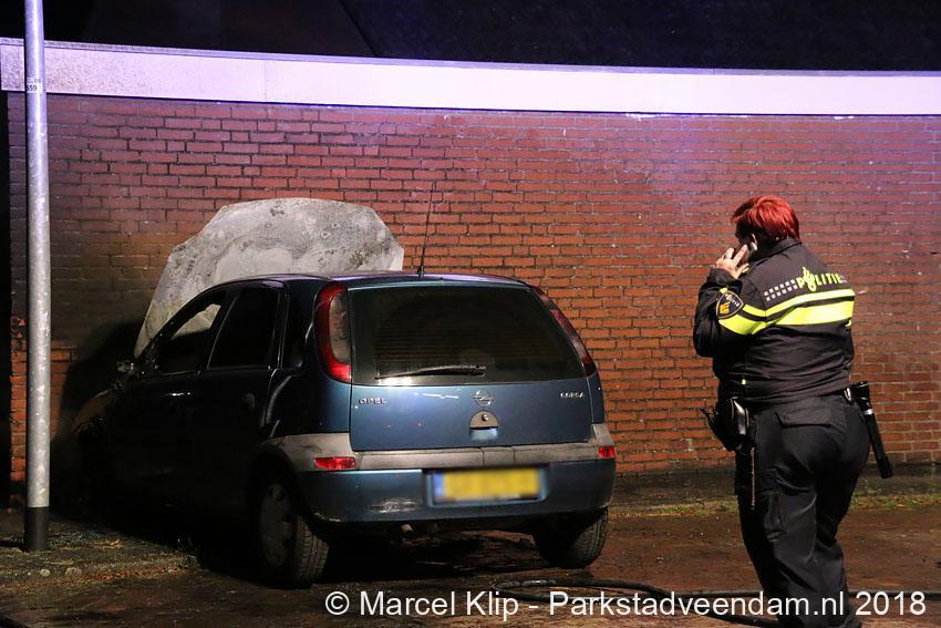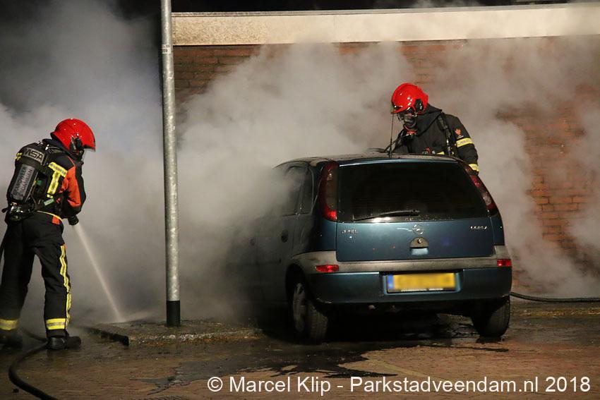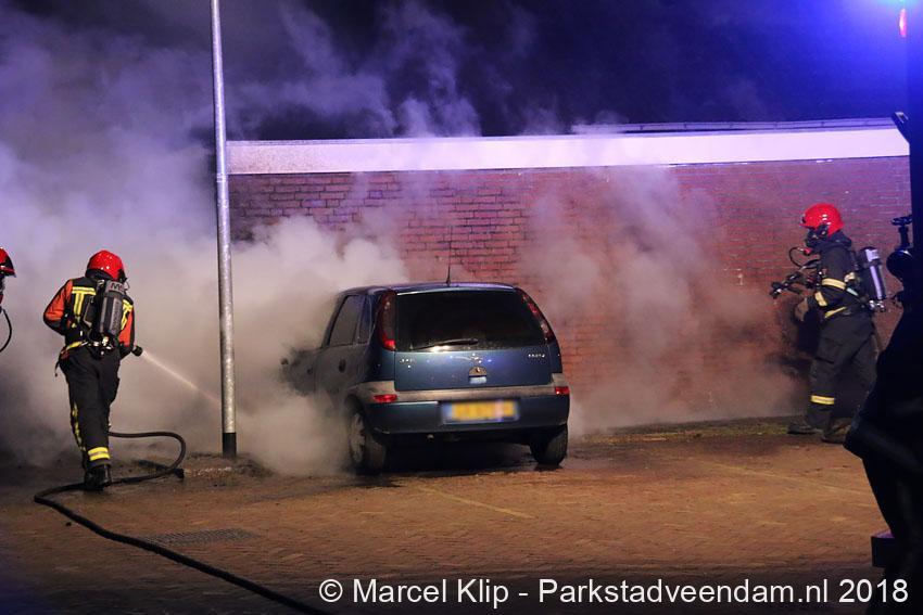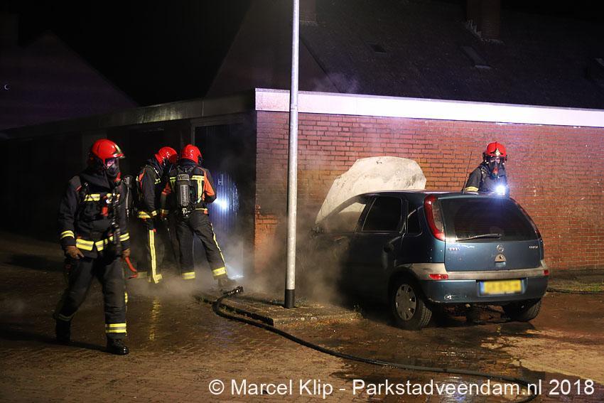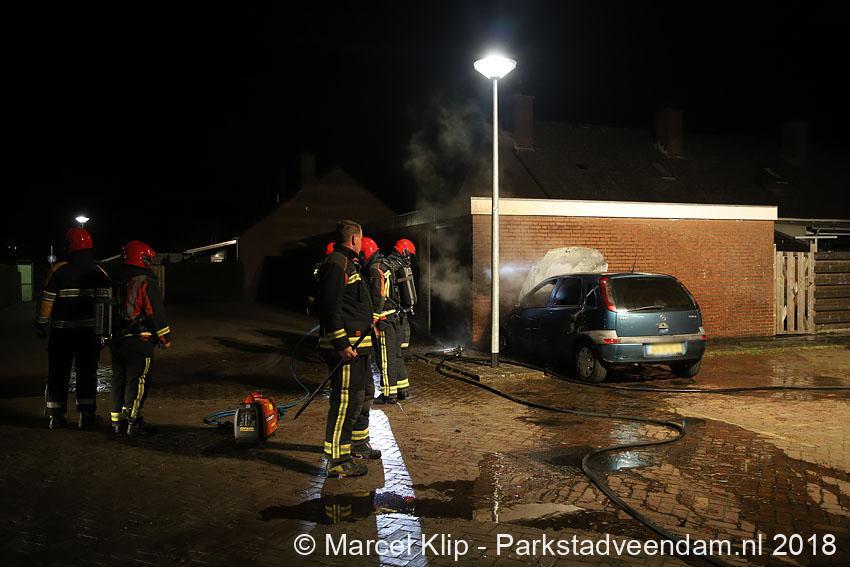 Muntendam – Voor de tweede keer in een week tijd is een geparkeerde auto op de parkeerplaats achter de woningen aan de Burgemeester Buitenhofstraat in Muntendam zwaar beschadigd geraakt door brand. De brand die in de nacht van dinsdag op woensdag tegen 01.39 uur bij de brandweer werd gemeld was snel onder controle, toch kon de brandweer niet voorkomen dat de auto zwaar beschadigd raakte.