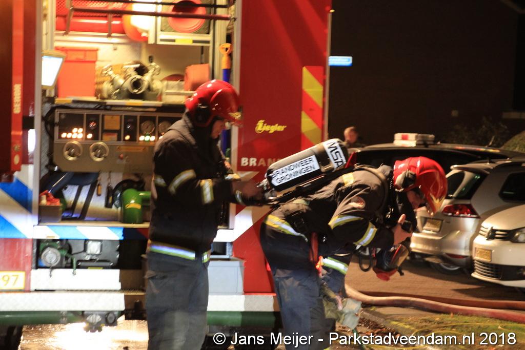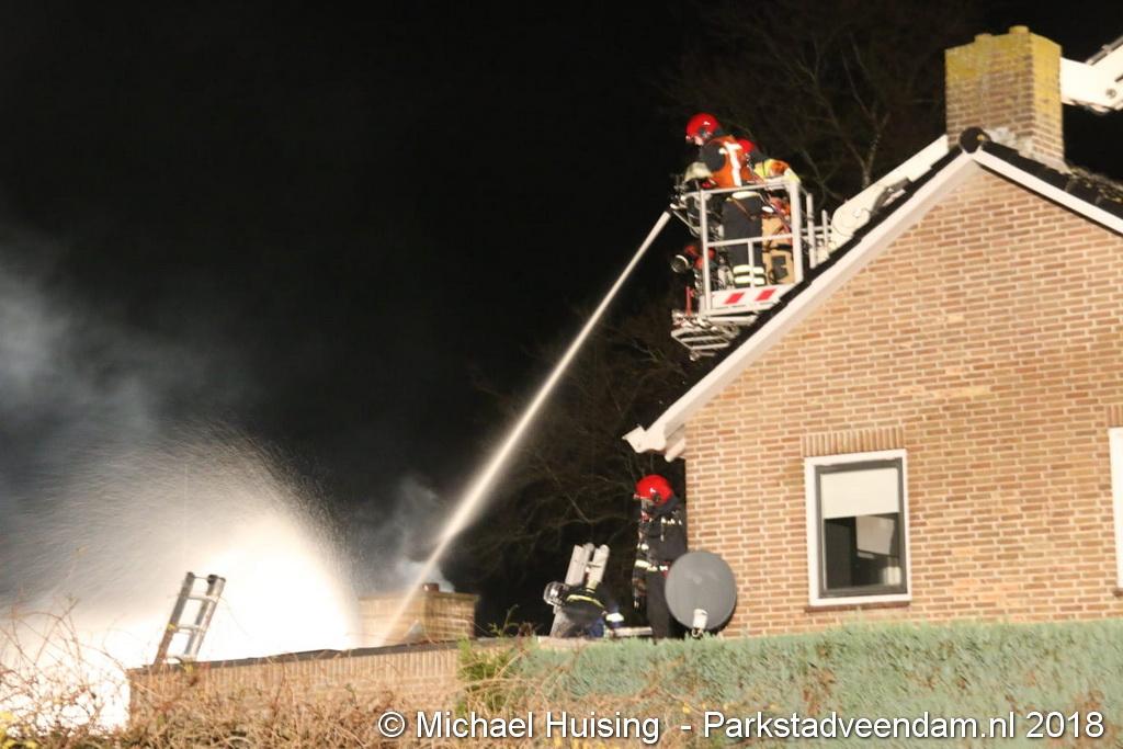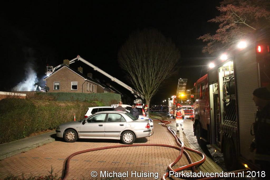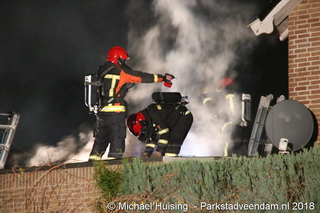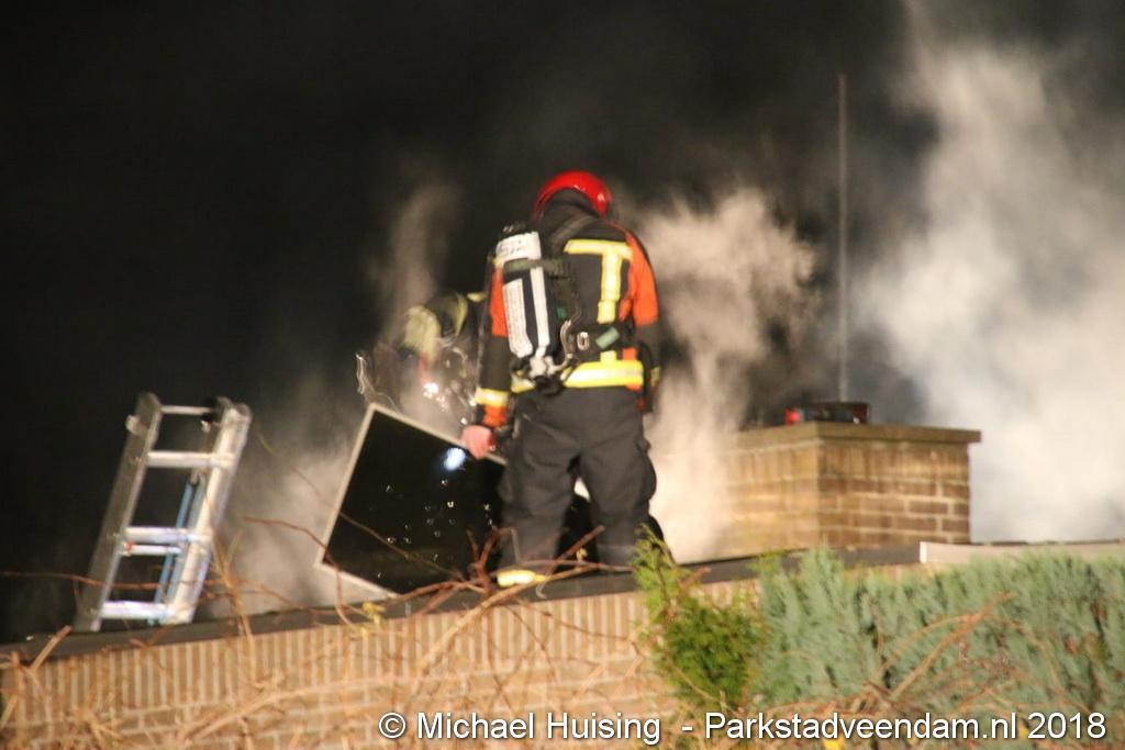 Om de dakbrand te bestrijden moest een deel van het dak worden verwijderd en een aantal zonnepanelen om beter bij de brandhaard te komen. De bluswerkzaamheden werden bemoeilijkt omdat op het dak zonnepanelen lagen. Om 21:45 uur meldde de brandweer dat de brand onder controle was, die werd bestreden door twee blusvoeruigen en een hoogwerker. Brandweer Harkstede kwam ook ter plaatsen om extra ademluchtflessen te brengen.