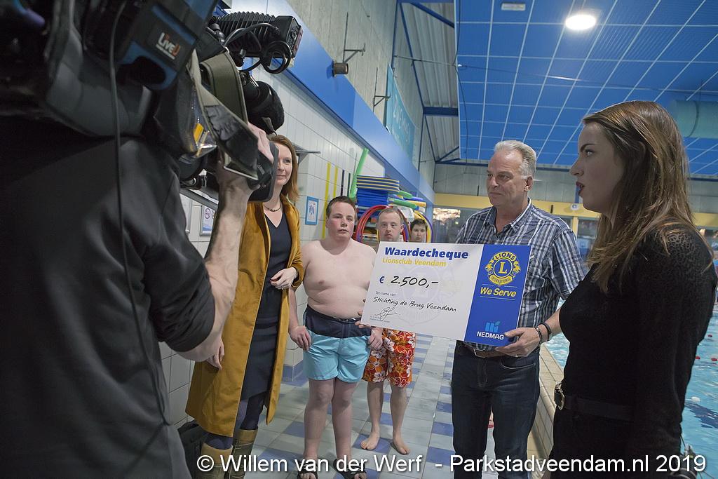 De eerste cheque werd overhandigd in zwemparadijs Tropiqua aan de G-sporters van Stichting De Brug, de andere cheque ging naar de G-sporters van basketbalvereniging Aquila in de Wildervanckhal.