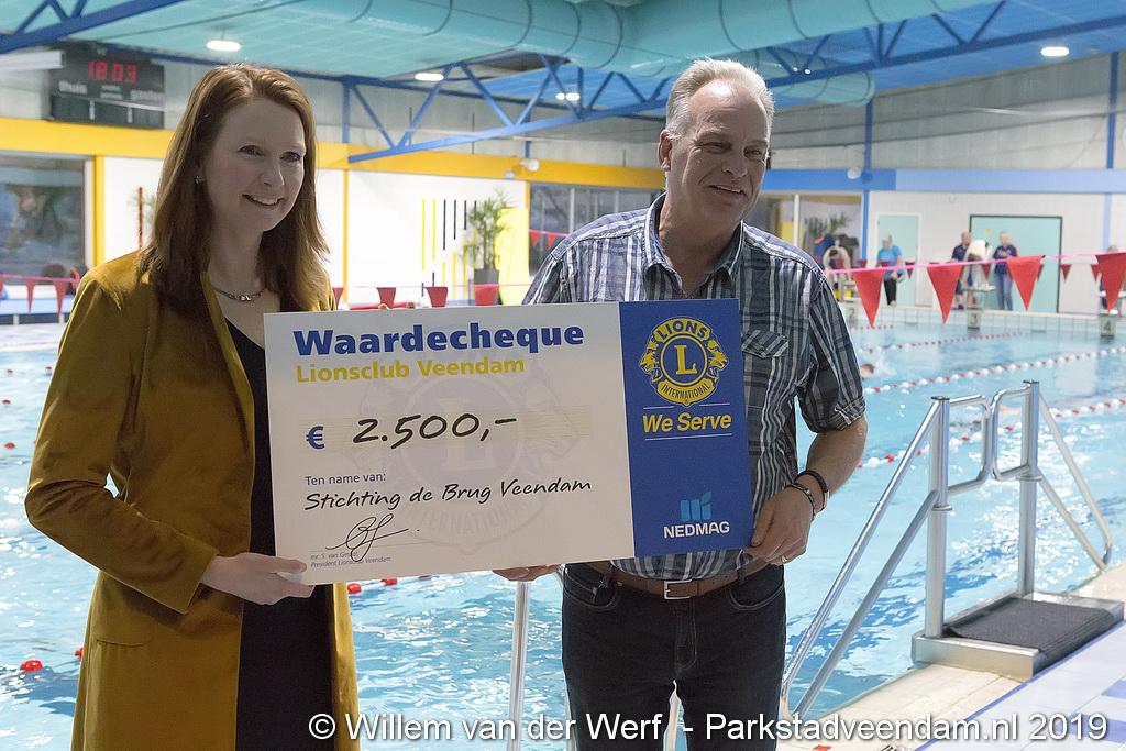 De Lions Club Veendam overhandigde woensdagavond een cheque aan twee verenigingen in de gemeente Veendam, die sport voor mensen met een beperking aanbieden.