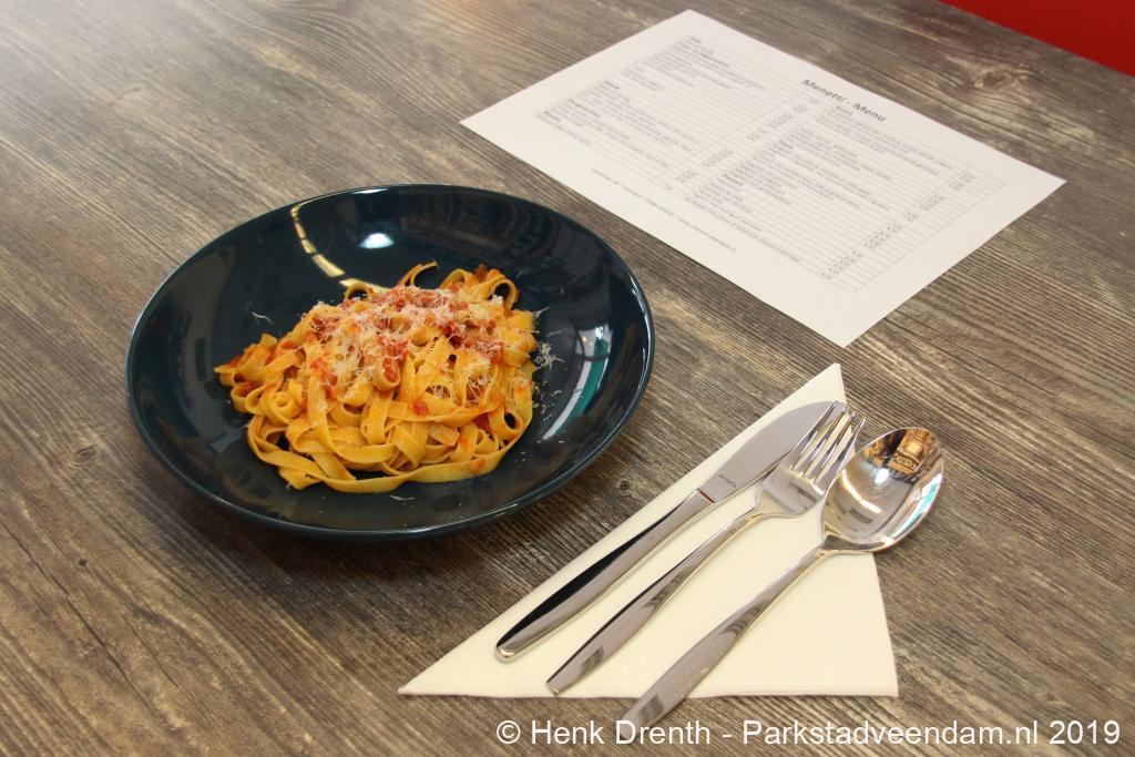 Aan huis bezorgt Menetti niet, pasta is immers meteen uit de pan direct op het bord het lekkerst. Maar afhalen kan wel. Of heerlijk ter plaatse eten aan de gezellige eethoek.