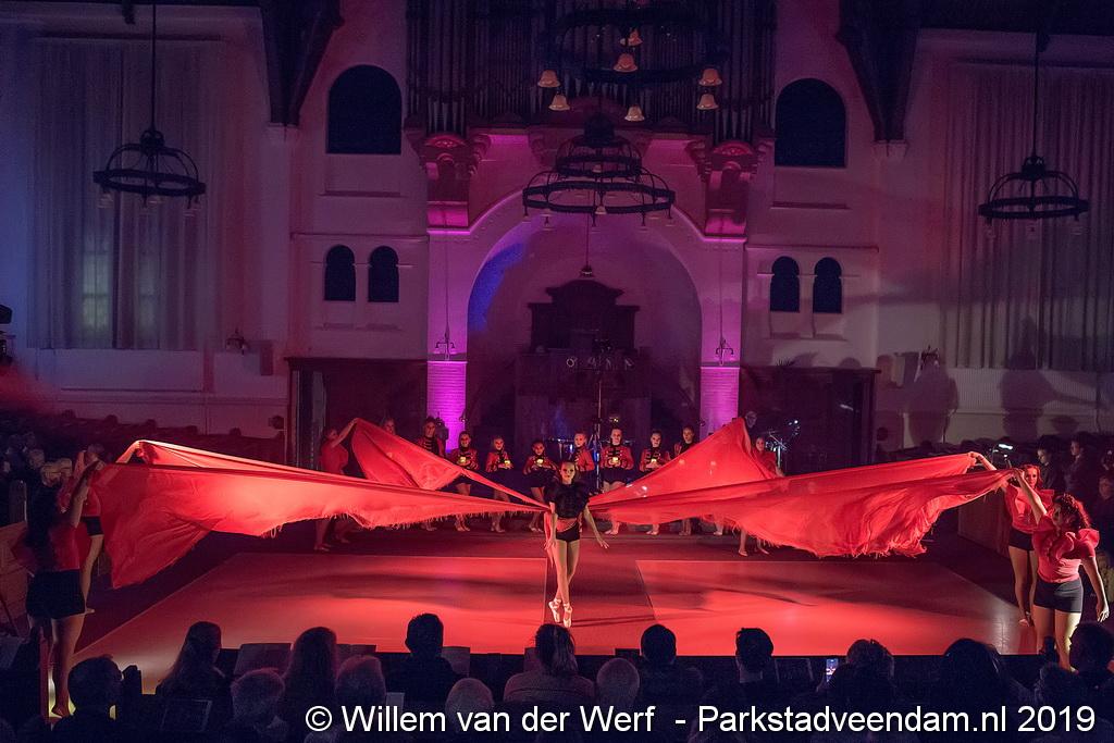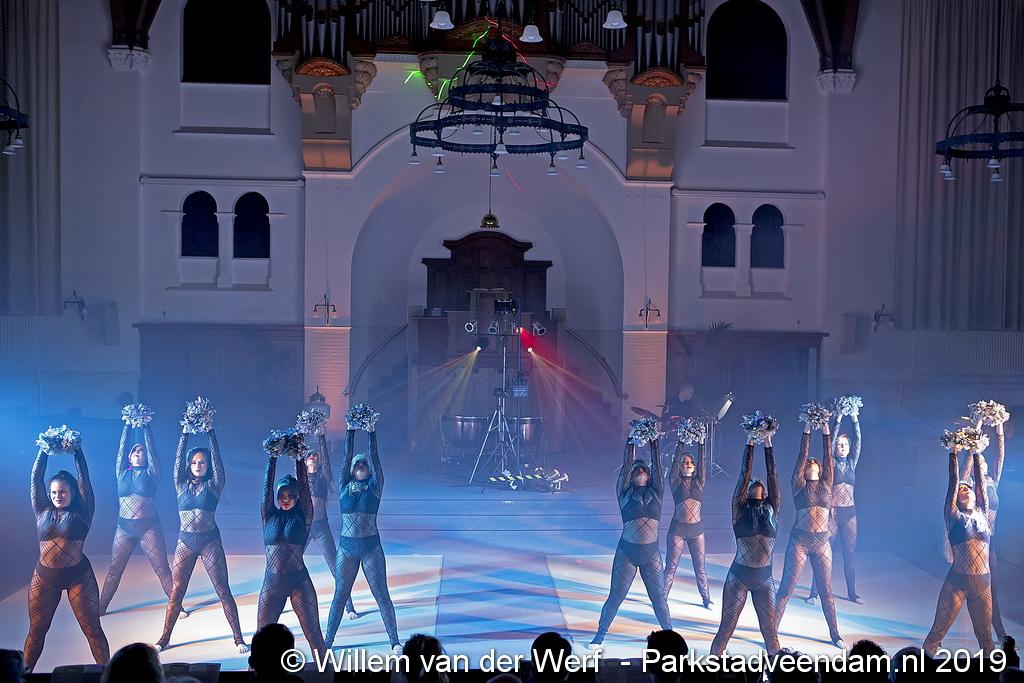 Daarna een afwisselend programma van show/ballet doorspekt met acrobatiek van de meiden van Oxygym - prachtig uitgedost. Met het fraaie orgel- en percussiespel worden de “kerk”bezoekers als het ware in extase gebracht. Stilzitten is er niet bij. Op de maat van de muziek wordt spontaan meegeklapt. Het daverende applaus tussen de acts en aan het einde geven weer hoe men geniet.