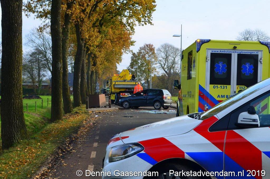 Naar verluidt kon de bestuurder niet meer tijdig remmen doordat een bestuurder uit tegengestelde richting ook door de wegversmalling reed. De doorgaande weg was ten tijde van de hulpverlening en berging (Fruitema Oude Pekela) van het voertuig afgesloten.