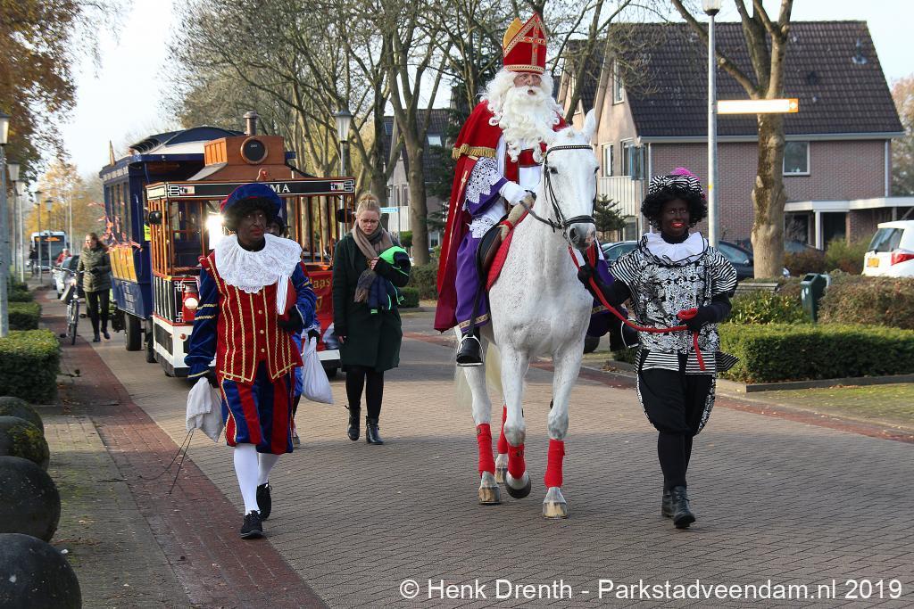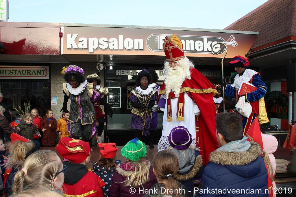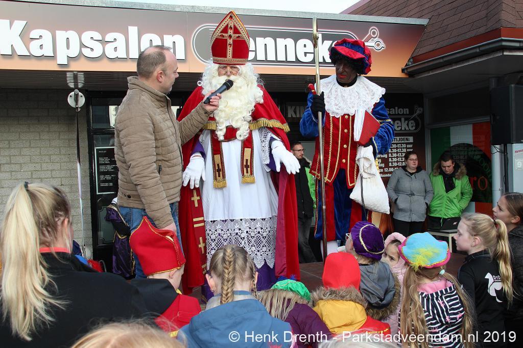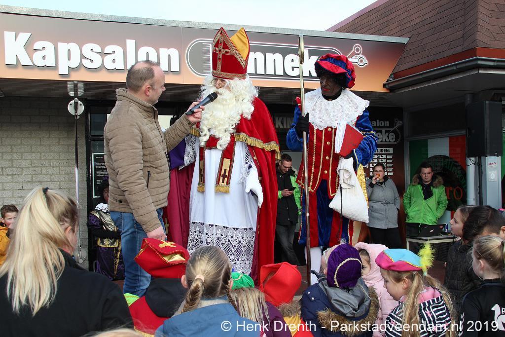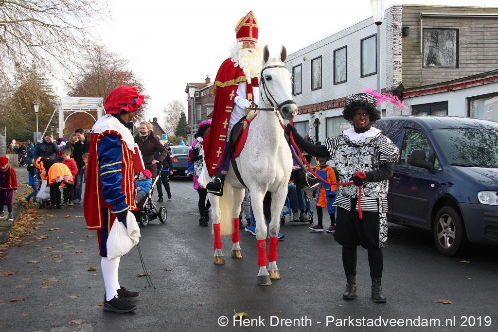 De bonte stoet begaf zich op weg door de Nijveenlaan, Cohenstraat, Nolenstraat, en via de Woortmanslaan naar het podium bij het winkelcentrum. Alwaar Sinterklaas een warm welkom wachtte door voorzitter Grieto Visser van de Ondernemersvereniging Wildervank. Aan presentator Peter Prummel vertelde de Sint hoe hij ondanks technische problemen aan boord Wildervank heeft weten te bereiken.