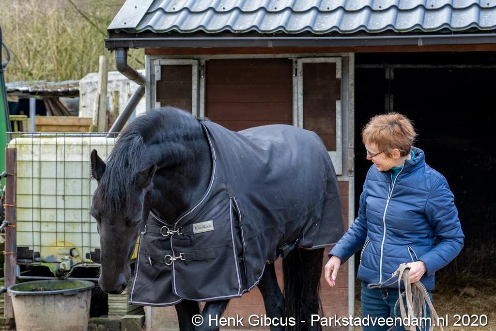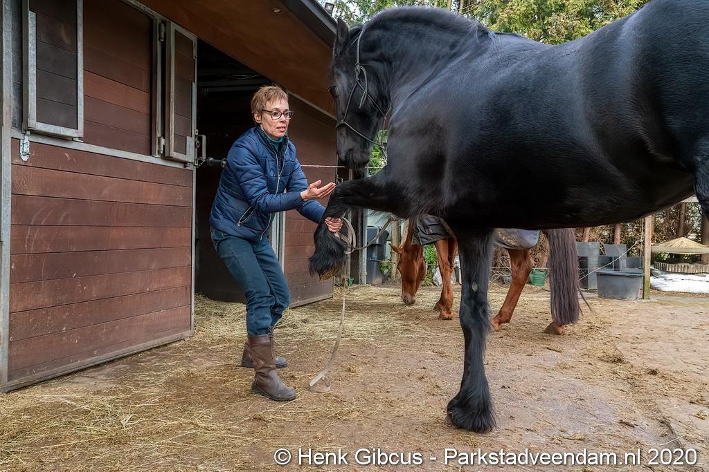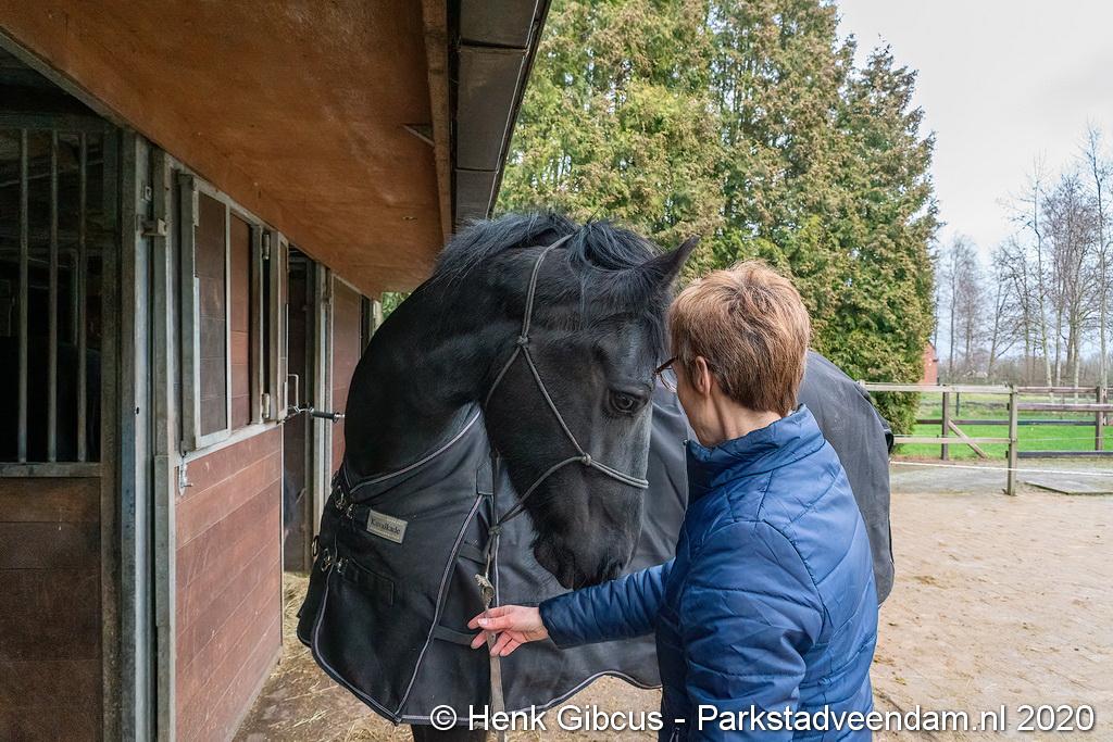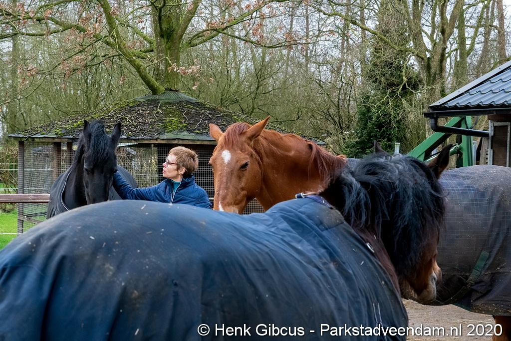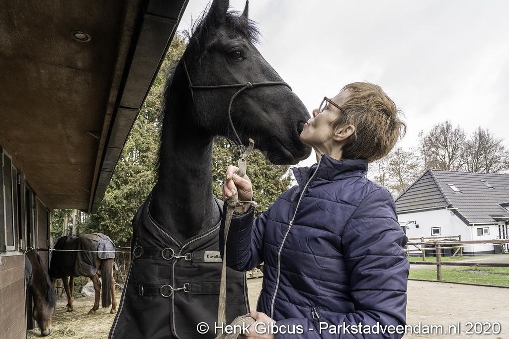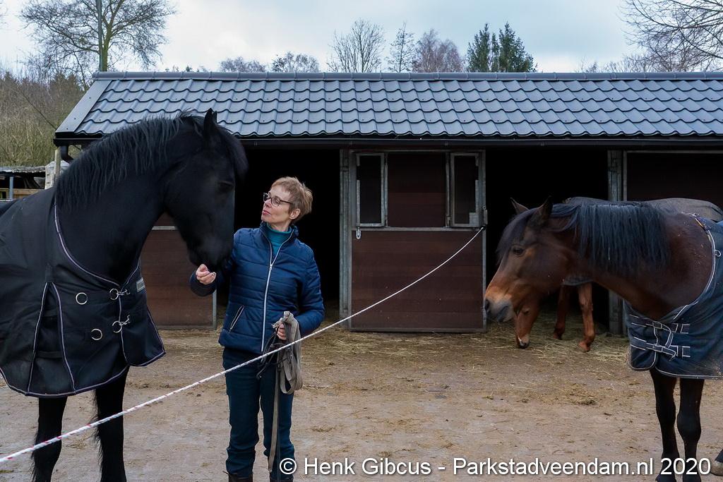 Bij aankomst voor het interview staan haar paarden lekker te smikkelen van het hooi wat ze net gekregen hebben. Haar paarden zijn: Duke een pony van 21 jaar, Impression, een vos van 20 jaar en Lotte een Fries van 8 jaar. Het hooi trekt meer dan de onbekende persoon die op bezoek komt.
