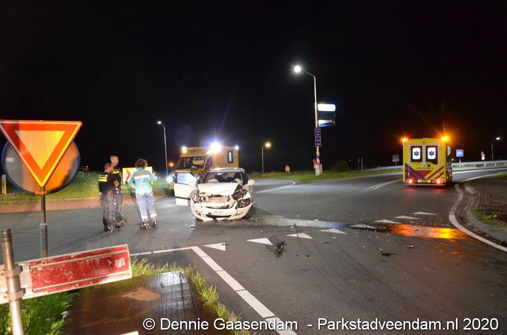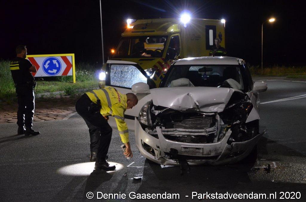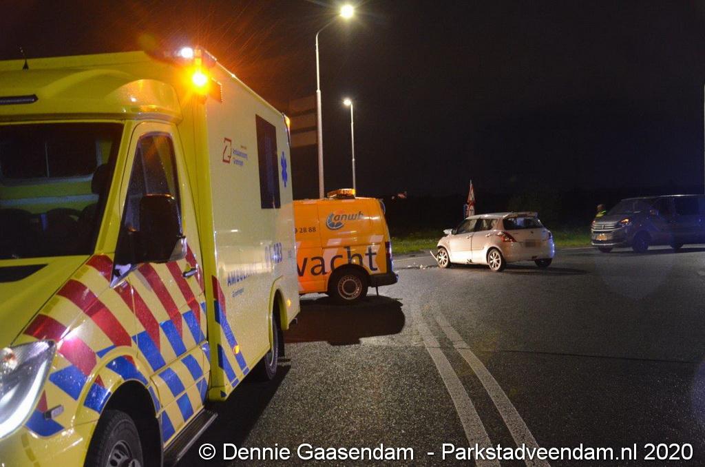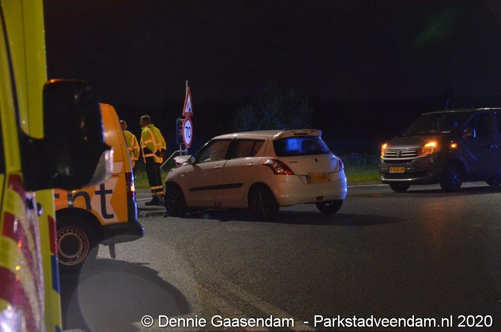 Op de N366 Geert Veenhuizenweg bij Veendam zijn zondagavond twee auto's met elkaar in botsing gekomen. De aanrijding werd veroorzaakt door een 41-jarige man uit Mussel, die de rotonde linksom had genomen. De man uit Mussel botste vervolgens frontaal op een Suzuki.