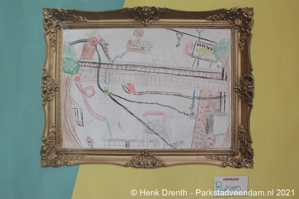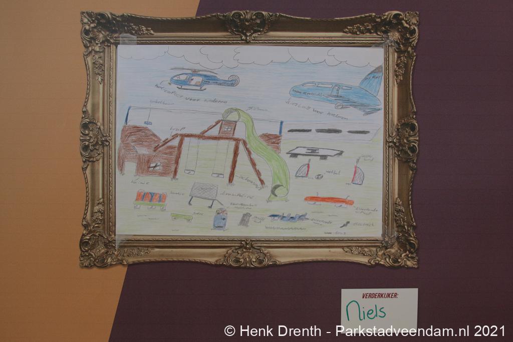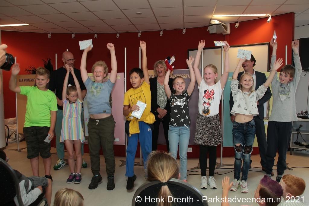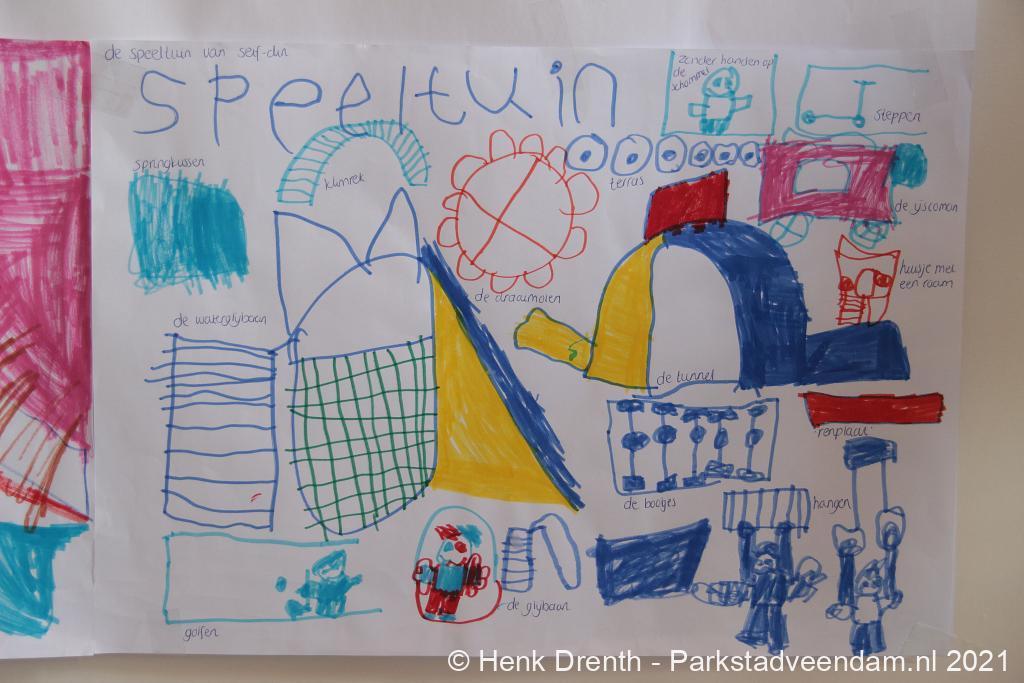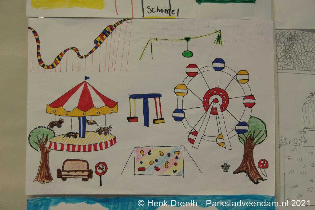 Aan de leerlingen was de vraag hoe middels tekeningen de speeltuin er over 20 jaar uit zou zien. De 7 winnende tekeningen werden een voor een in willekeurige volgorde onthuld. De juryleden hadden bedacht dat ze allemaal even goed zijn. Alle 7 makers gingen met de prijs naar huis. Een waardebon ter grootte van 50 euro.