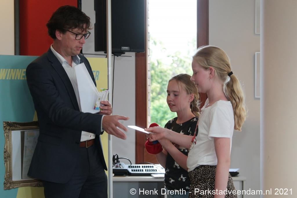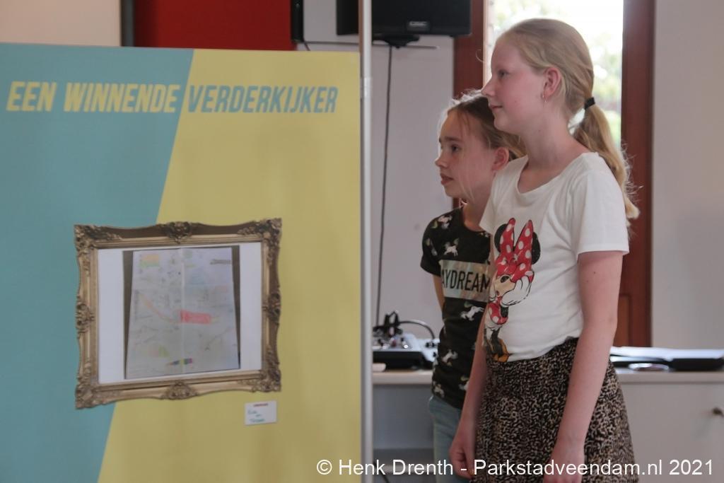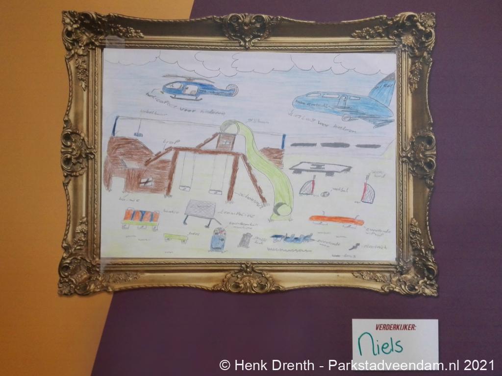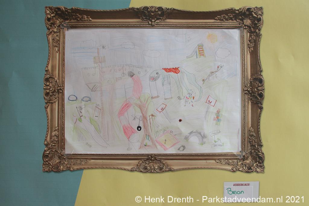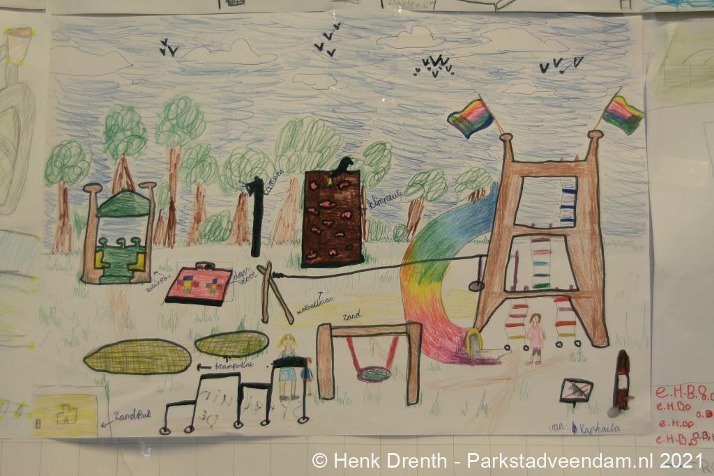 Aan de leerlingen was de vraag hoe middels tekeningen de speeltuin er over 20 jaar uit zou zien. De 7 winnende tekeningen werden een voor een in willekeurige volgorde onthuld. De juryleden hadden bedacht dat ze allemaal even goed zijn. Alle 7 makers gingen met de prijs naar huis. Een waardebon ter grootte van 50 euro.