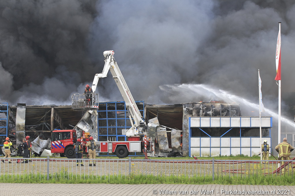 Bij elektrotechnische groothandel Vihamij aan de Cereslaan in Veendam is vanmorgen tegen kwart over 10 brand uitgebroken. De brandweer meldt dat het gehele pand verloren lijkt. De brand brak uit op het dak. Daar waren dakdekkers aan het werk. Ook zijn er enkele knallen gehoord, zeer waarschijnlijk afkomstig van aanwezige gasflessen. De brandweer is met groot materieel aanwezig. Er raakte niemand gewond. Iedereen heeft het pand veilig kunnen verlaten.