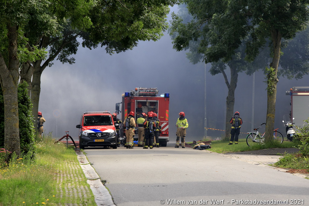 Veendam is opgeschaald naar grip1 .Het pand lijkt verloren, wij gaan defensief optreden. Dat wil zeggen dat de brandweer het pand niet meer naar binnen gaat. iedereen heeft het pand veilig kunnen verlaten.