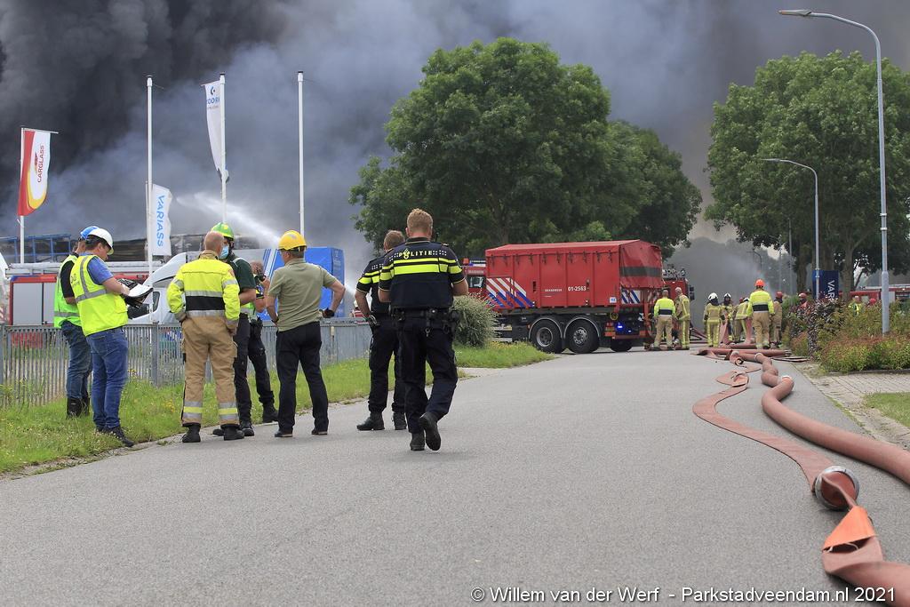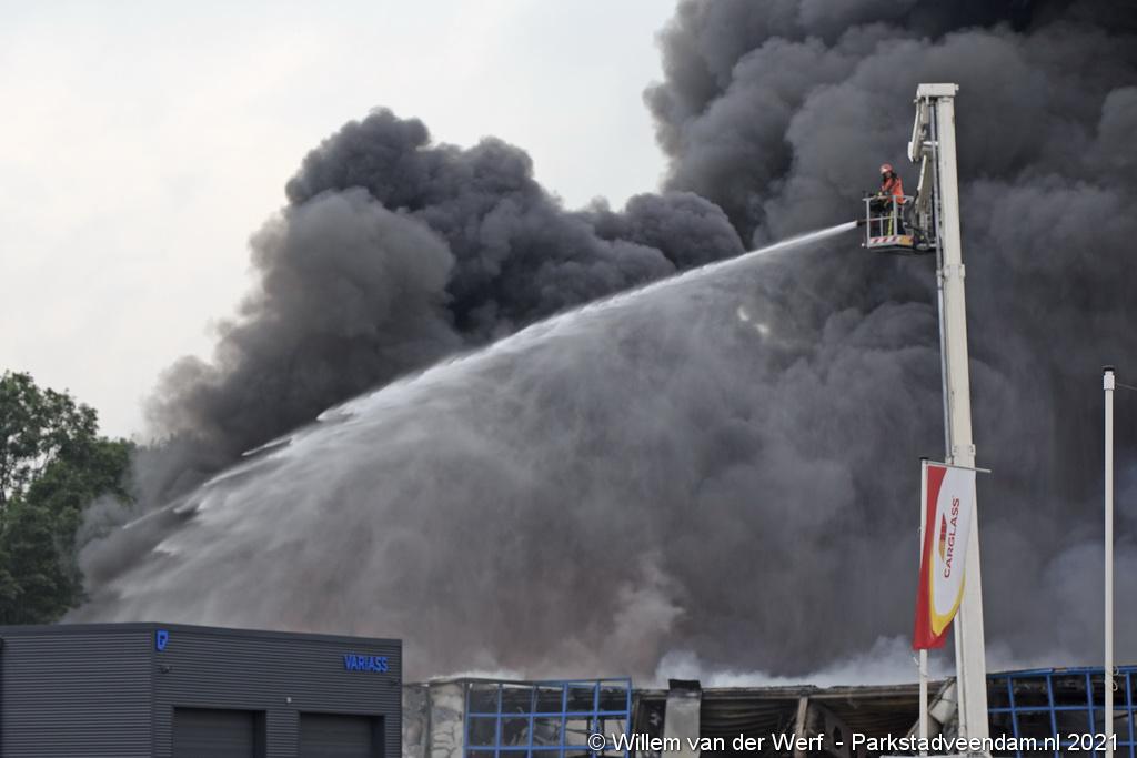 Bij de brand komt veel rook vrij. De brandweer die met veel materiaal is uitgerukt adviseert, wie last heeft van de rook, ramen en deuren te sluiten en ventilatiesystemen indien mogelijk uit te schakelen.