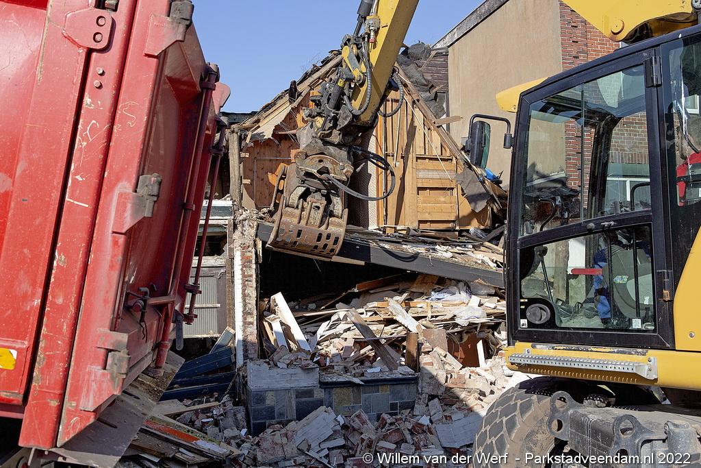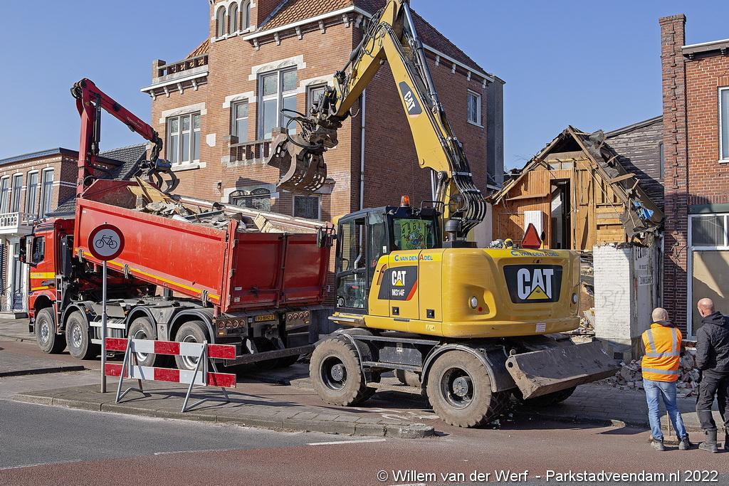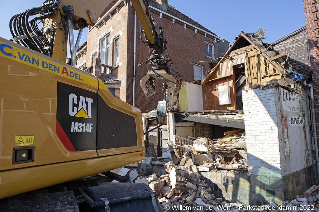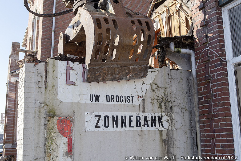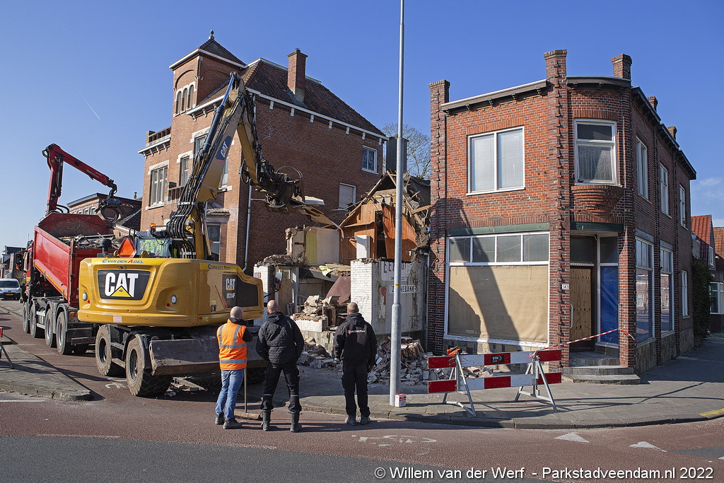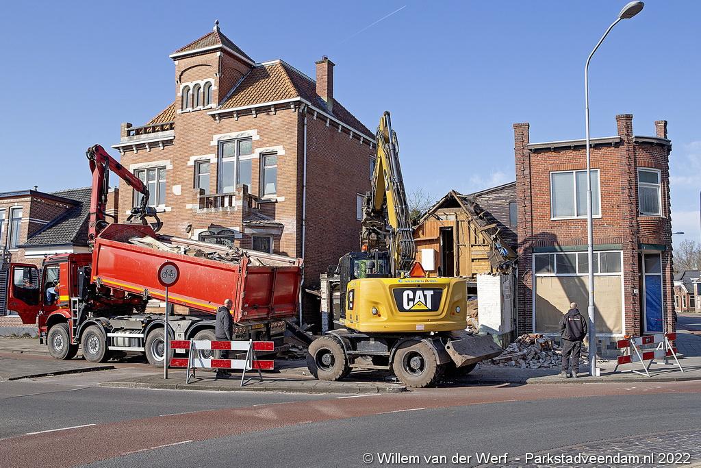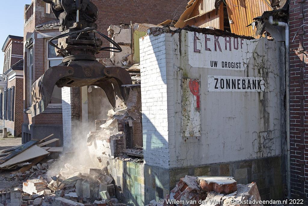 De slopershamer is donderdagmorgen begonnen met de gedeeltelijke sloop van het voormalige pand van drogisterij Eekhof op de hoek Jak.Bruggemalaan- Beneden Oosterdiep in Veendam.