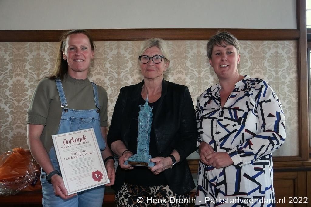 De organisatie van de lichtjesroute Veendam draagt vanaf nu de titel van “Veendammer van het Jaar 2021”. Tijdens een feestelijke bijeenkomst in het gemeentehuis van Veendam is dit bekend gemaakt door de voorzitter van de jury, Max Bentum en burgemeester Berry Link. De organisatie van de Lichtjesroute, bestaande uit Tineke Alders, Ramona Mulder en Ingrid Rengers, zijn tijdens dit feestelijke moment in het zonnetje gezet. Het is de 14de keer dat deze titel is toegekend.
