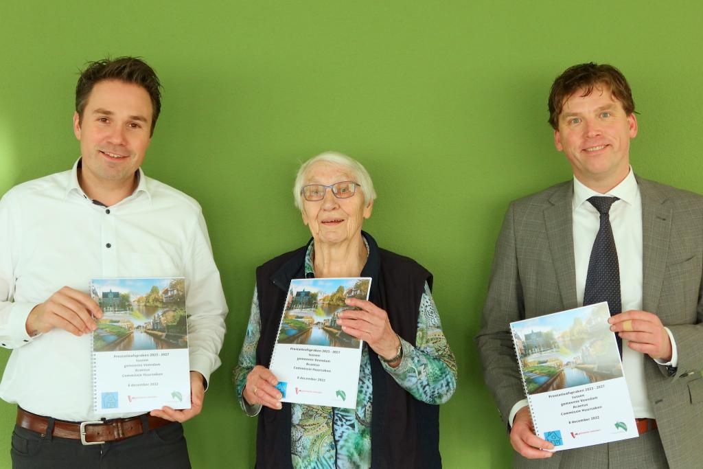 Rene Dalmolen (Acantus), Riny van der Meer (Commissie Huurzaken) en Henk Jan Schmaal (wethouder gemeente Veendam)