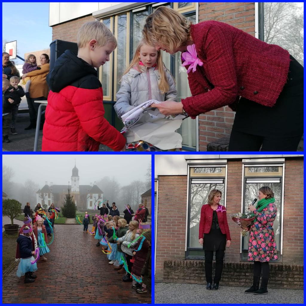 Op woensdag 21 december nam juf Margriet Korf na meer dan 23 jaar afscheid van CBS 't Haimstee. Met een lange stoet auto's werd zij van huis opgehaald voor een uitstapje naar de Fraeylemaborg in Slochteren.