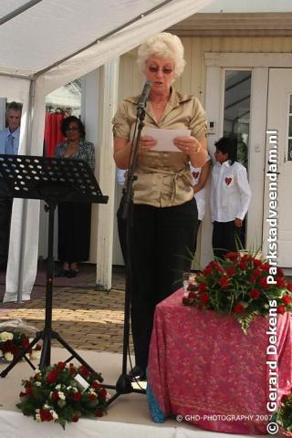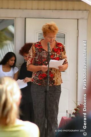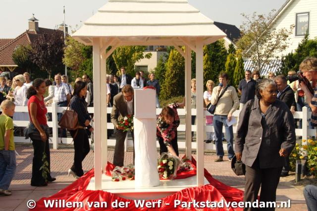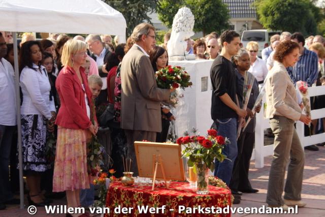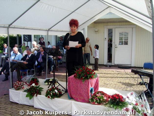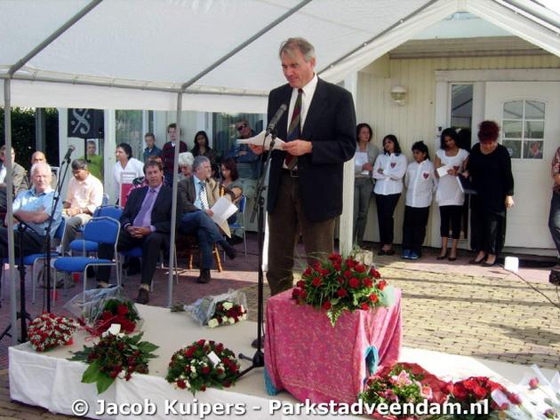 Liefst zes sprekers waren aanwezig om het woord te voeren. Allereerst was dat burgermeester Ab Meijerman van Veendam. De burgervader zei onder meer dat deze gruwelijke daad een ommekeer is in het leven van de familie Mohansingh. Verder zei Meijerman dat, met dit blijvend aandenken, het een vorm was tegen zinloos geweld. Ik had in de achtertuin van de familie even een gesprek met Rob Mohansingh en hij vertelde me dat het gezin blijft wonen in Veendam. Vervolgens voerde rechercheur Harrie Koenen het woord en daarna Greetje Smit.