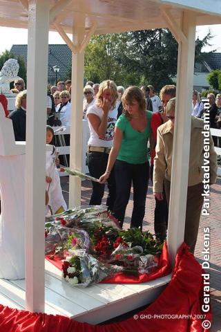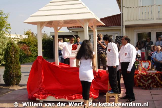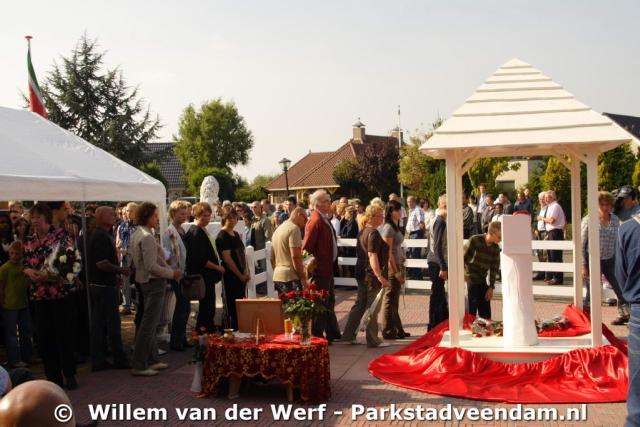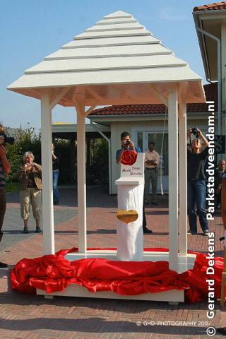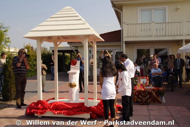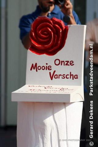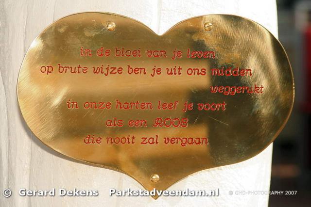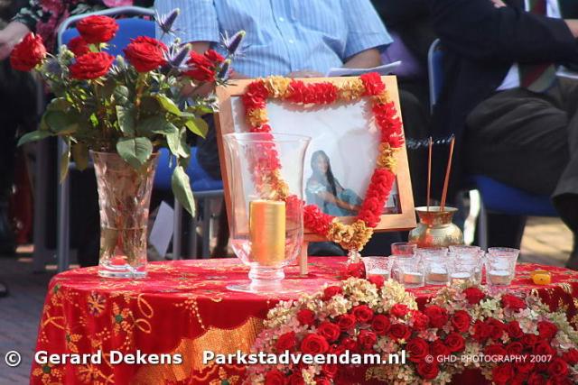 VARSCHA - Zondag 23 september 2002 is het precies 5 jaar geleden dat de Veendamse Varscha Mohansingh levenloos werd gevonden in de badkamer. De toen 14-jarige Varscha Mohansingh werd op die bewuste dag dood aangetroffen. Na drie maanden werd de moordenaar, Kris J, een ver familielid van de familie Mohansingh, opgepakt en in 2004 door het gerechtshof in Leeuwarden veroordeeld tot tien jaar gevangenisstraf en TBS. Overigens ontkent Kris J momenteel nog, dat hij onschuldig is. Ter nagedachtenis hebben de ouders van Varscha een monument laten maken door kunstenares Johanna Nijlunsing uit Glimmen. Zondag 23 september 2007 was dus het moment gekomen om het monument te onthullen van Varscha. En wel in de voortuin van de familie Mohansingh. “Veel mensen zullen het waarschijnlijk onzin vinden”, zei de 16-jarige zus Chanu en haar emotionele toespraak. “Maar wij niet, het is een teken dat ze dicht bij ons is”.