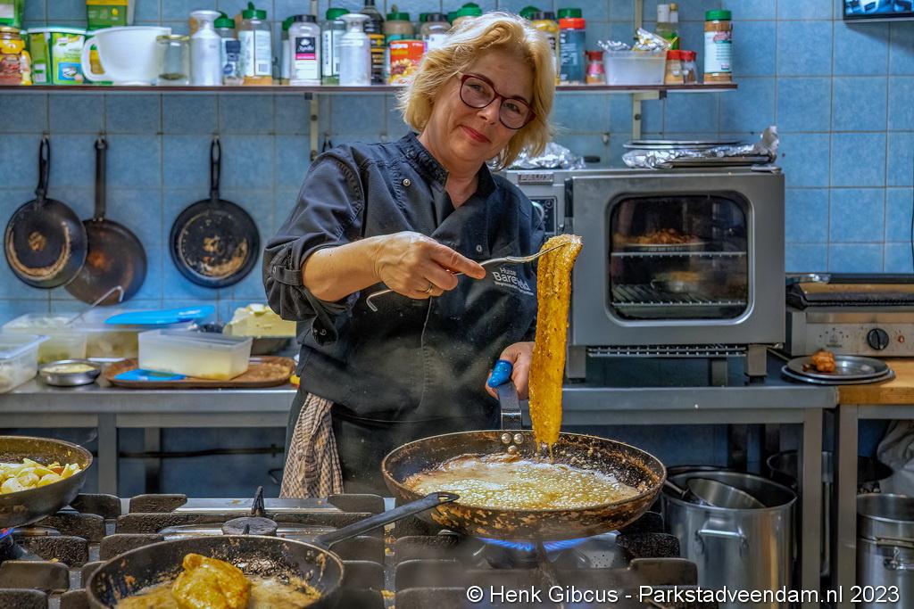 We zijn in gesprek met Thea en Fokke Witteveen, de uitbaters van dit wegrestaurant. Op 1 mei zitten ze hier alweer 6 jaar. Er is veel veranderd. Van een bijna-weg-restaurant hebben ze er in toch betrekkelijk korte tijd weer een florerende zaak van gemaakt. Thea is de drijvende kracht achter dit succes. Fokke doet dit ondersteunend naast zijn werk als kraanmachinist bij Wagenborgen. Samen met het hele team, er staan 17 mensen op de loonlijst, zorgen ze dat de gasten zich welkom / thuis voelen, tevreden zijn én terugkomen.