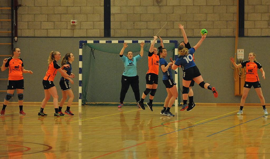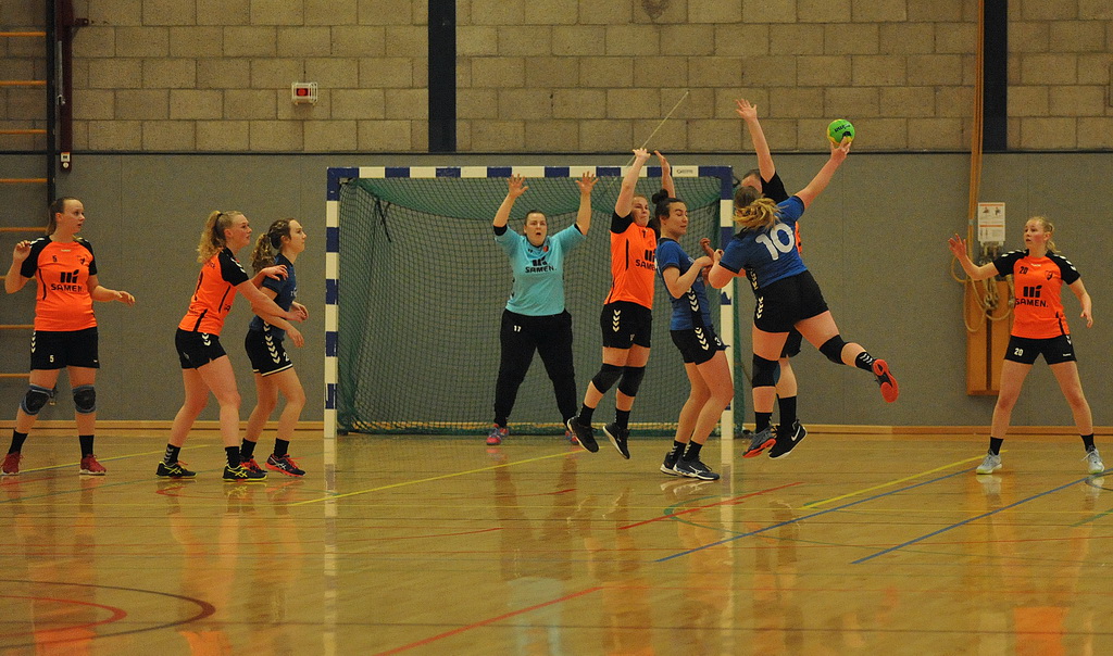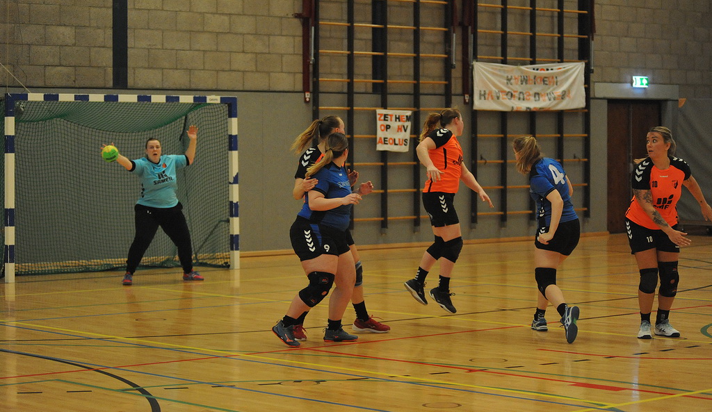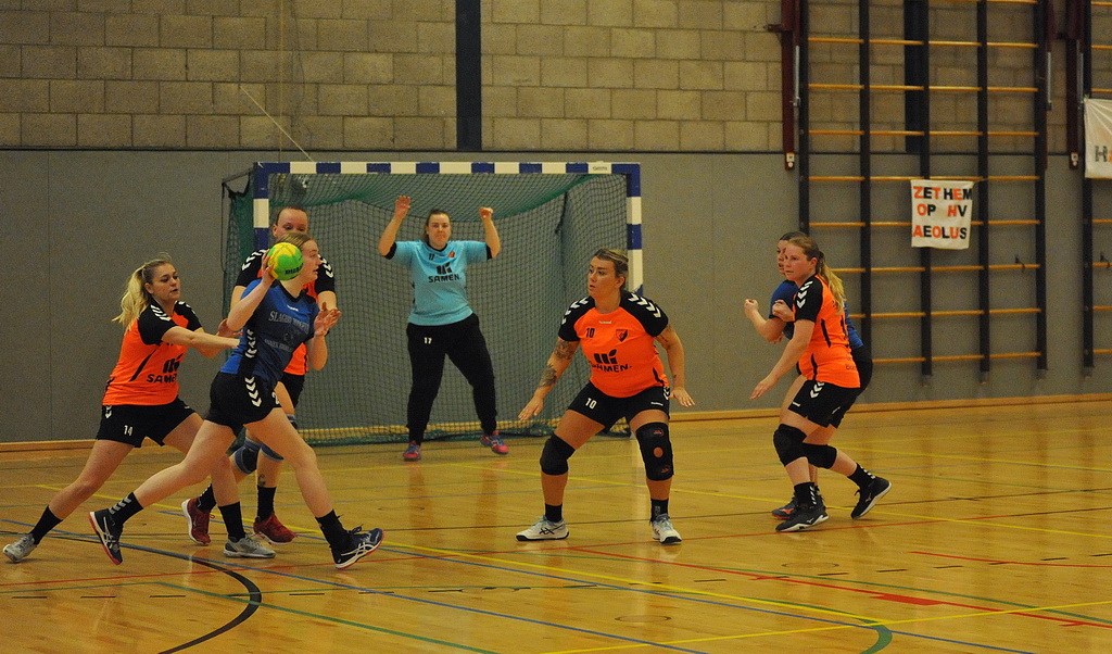 Voor een apotheose zoals deze zijn twee formaties nodig die daadwerkelijk alles uit de kast willen halen. En dat aspect was aan beide opponenten wel besteed. De Drentse equipe speelde vol overgave en de titelkandidaat moest alle zeilen bijzetten om in de wedstrijd te blijven. Aan Aeolus zijde viel de wedstrijdspanning hier en daar toch enigszins terug te vinden in het vertoonde spel. Kleine momentjes van twijfel bij de afronding, en een prima keepster aan de kant van Hoogersmilde, maakten dat de thuisploeg een 5-3 voorsprong niet wist vast te houden. Daarbij had de Oost-Groninger formatie de defensieve zaken nog niet echt op orde. Het was, en niet voor het eerst, aan keepster Anne Pater (ze stopte bij 5-3 een strafworp) te danken dat de thuisploeg in de wedstrijd bleef. De gasten wisten desondanks langszij te komen en zo stond het halverwege 9-9.