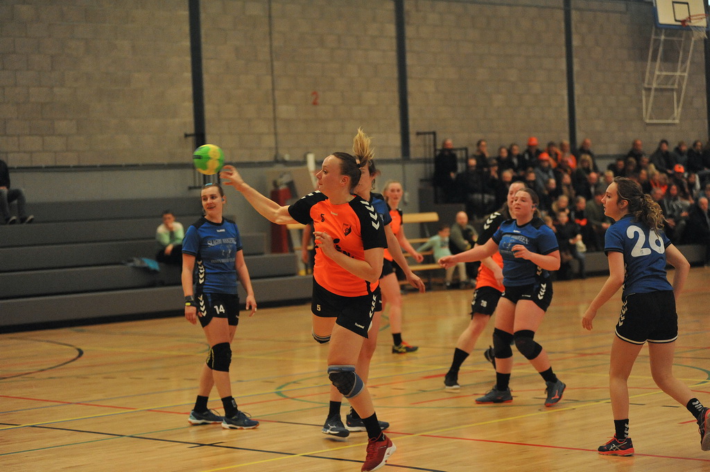 Het gelijkopgaande duel kreeg aanvankelijk ook een vervolg in de 2e helft. Het wedstrijdbeeld veranderde nauwelijks en bij 12-13 in de 40e minuut koesterde Hoogersmilde een minimale voorsprong. Op de volgepakte tribunes in de Wildervanckhal zaten alle bezoekers op het puntje van hun stoel. Maar het schrikmoment voor de lijstaanvoerder moest toen nog komen. Halverwege het 2e bedrijf liep Anne Pater op een ongelukkig moment een knieblessure op. Na verzorging probeerde ze alsnog het duel uit te spelen. Maar na een 2e moment met de gekwetste knie werd duidelijk dat ze niet verder kon en moest gedesillusioneerd het strijdtoneel verlaten. Midweekspeelster Anita Bult werd als stand in opgeroepen om het doel te verdedigen en liet zich van haar beste kant zien. Desondanks was men bij Aeolus even aangeslagen. Balverlies in de aanval bij de thuisformatie hielp de ploeg uit Smilde in het zadel. Dat liep vervolgens weg naar een 15-18 voorsprong in de 50e minuut.