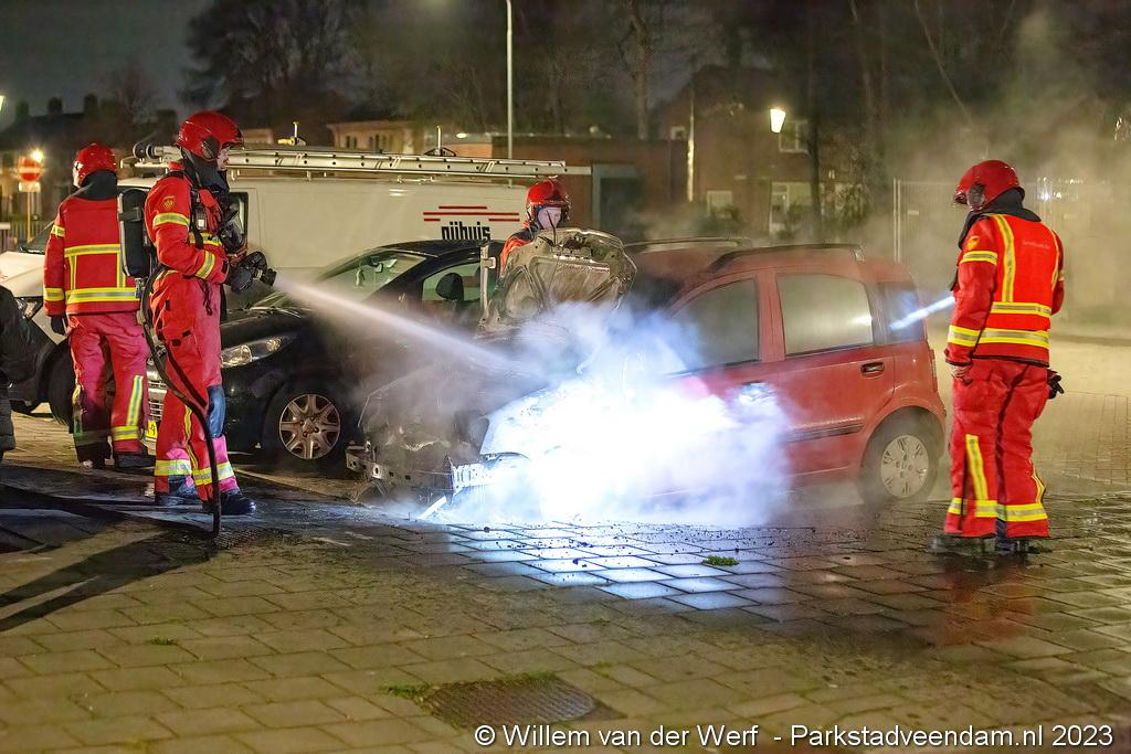Twee nachten eerder gingen aan de Groningenlaan 2 auto`s in vlammen op en een nacht later aan de Ds. Sannesstraat.