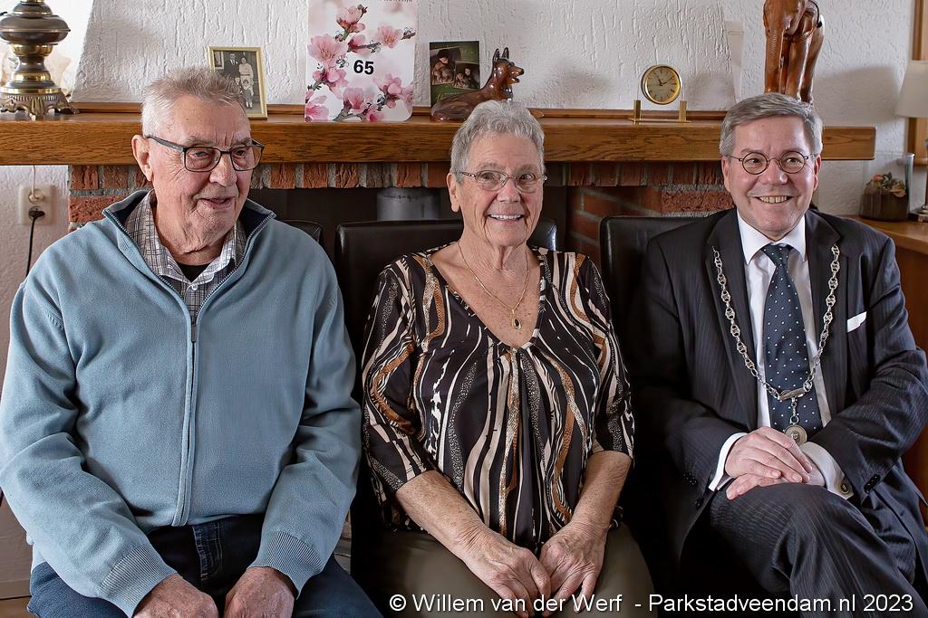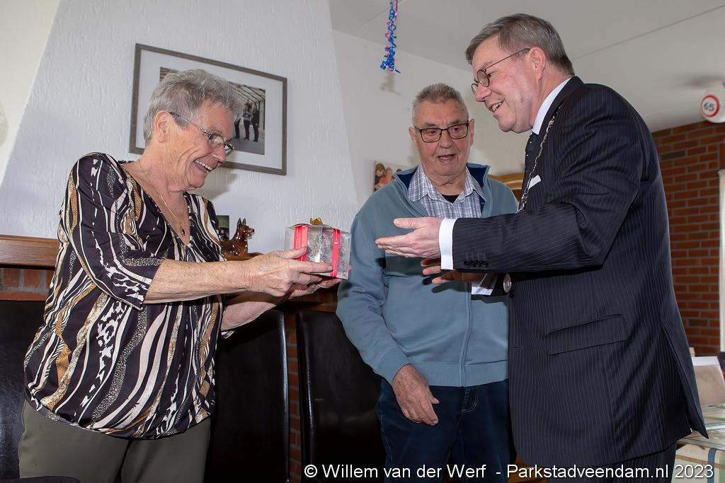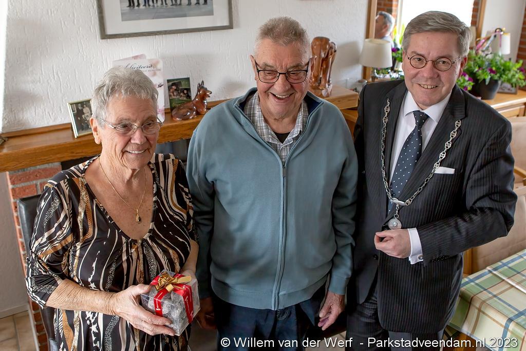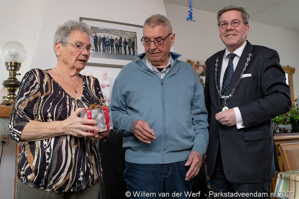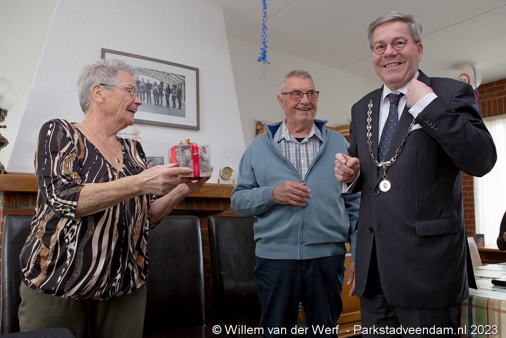 Burgemeester Berry Link feliciteerde het echtpaar persoonlijk bij hun thuis aan de Westerbrink in Veendam. Het bruidspaar zal het briljanten huwelijk in familiekring vieren.