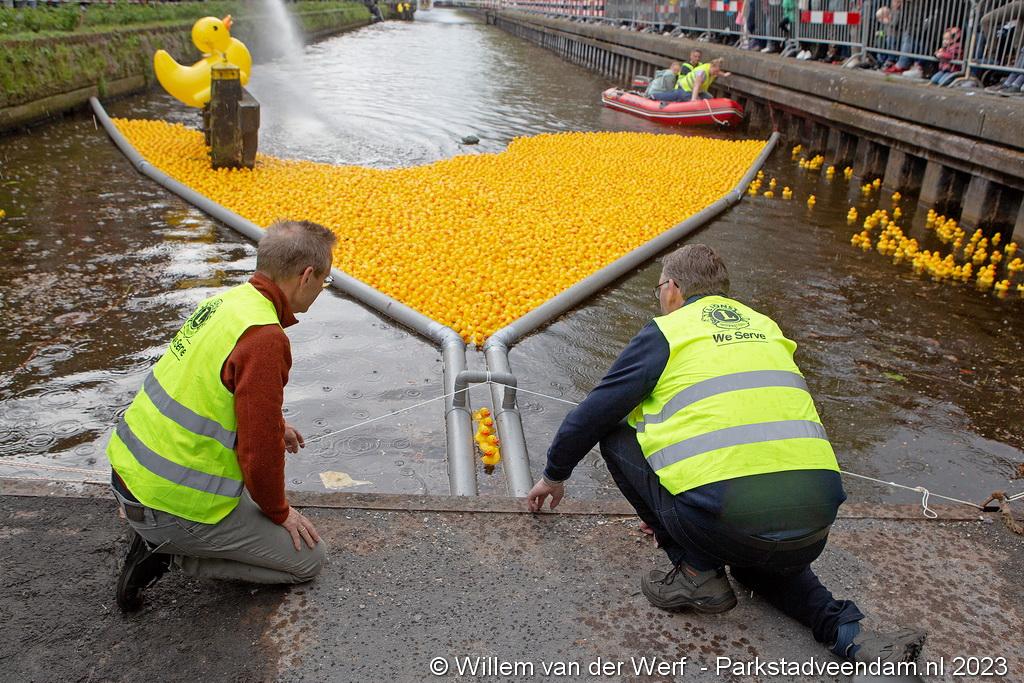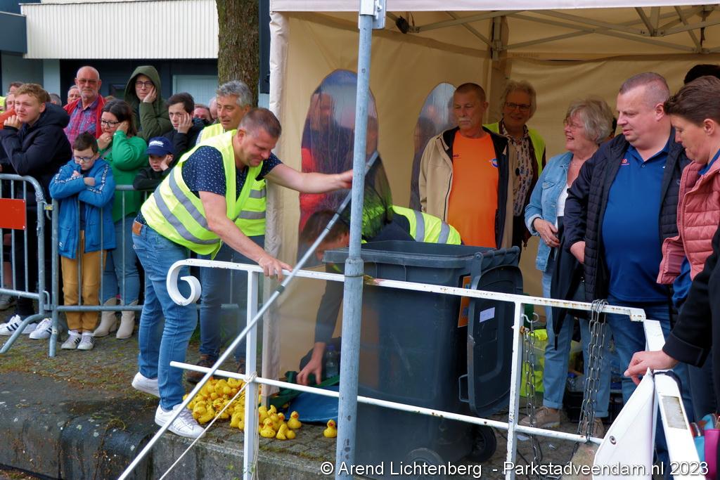 Onder toezicht van notaris Martine Wouters dobberde 20 minuten na de start badeendje 4.221 in de fuik. Goed voor de eerste prijs. Al snel volgde badeendje 1223 en 1840, goed voor de tweede en derde prijs. In zijn totaliteit waren 72 badeendjes goed voor een prijs.