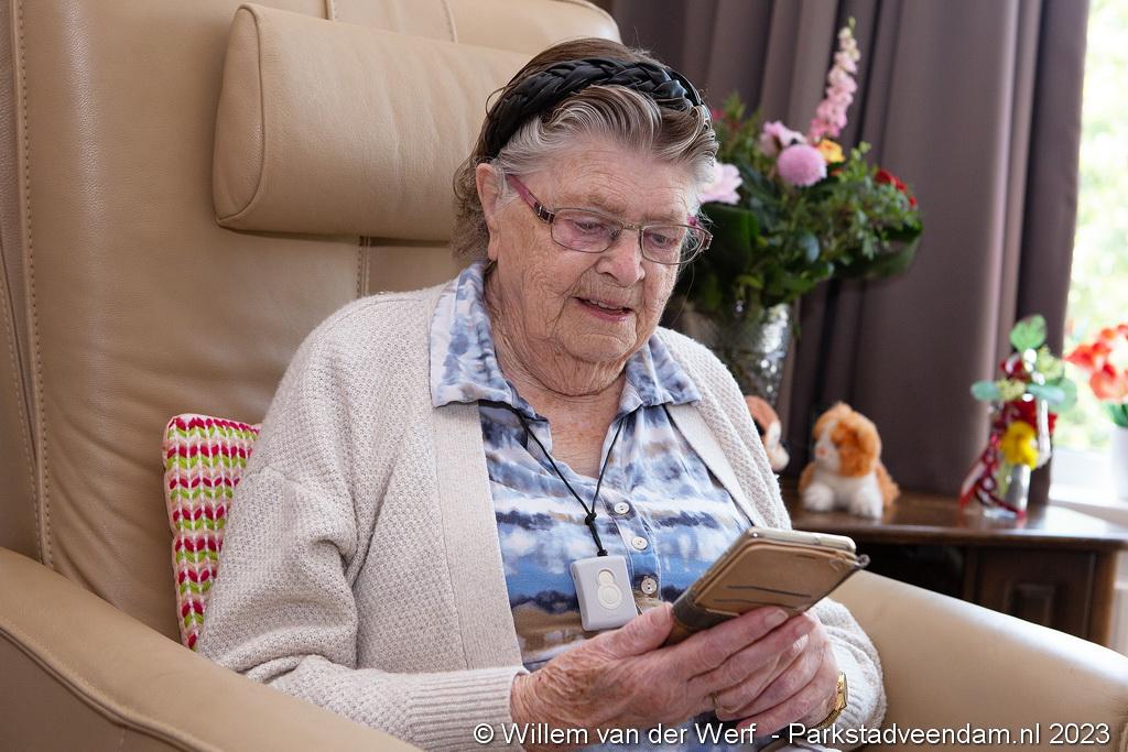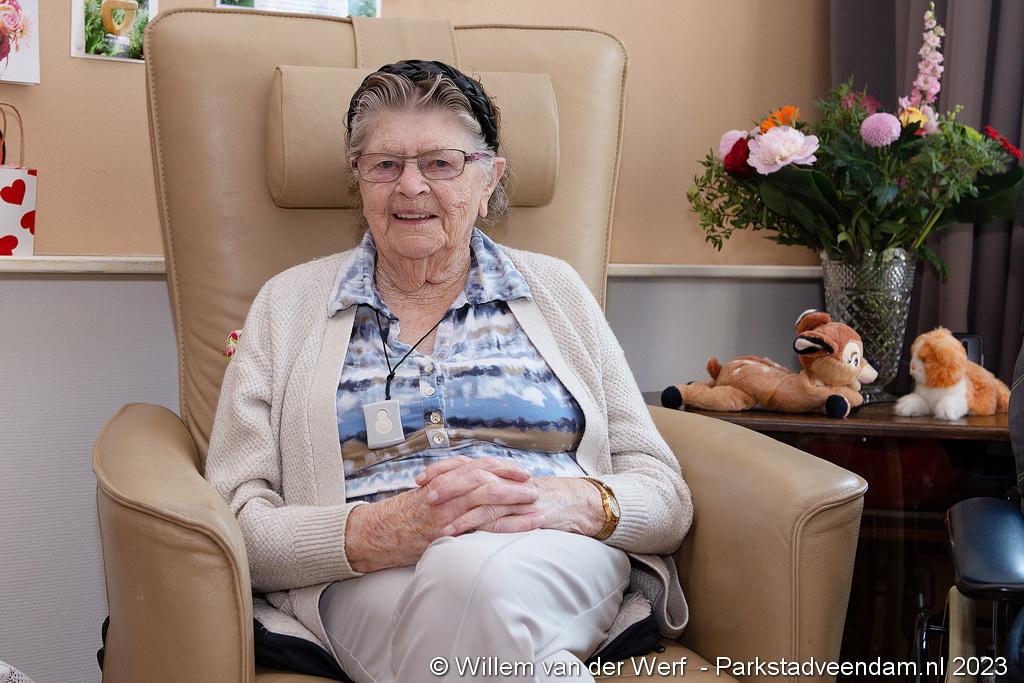 Mevrouw van Dam- van Houten is zaterdag 3 juni 2023 102 jaar geworden. Burgemeester Berry Link feliciteerde haar persoonlijk maandagmorgen om 11.00 uur bij haar thuis in Veendam.