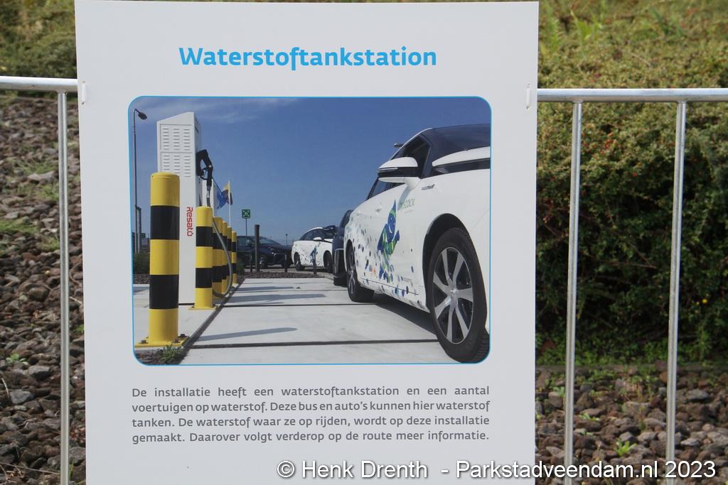 Leuke info werd ook middels bebording gegeven. De informatie betrof de verschillende onderdelen van de installatie. Zoals over het waterstoftankstation op het terrein voor het tanken van de auto's en een bus.