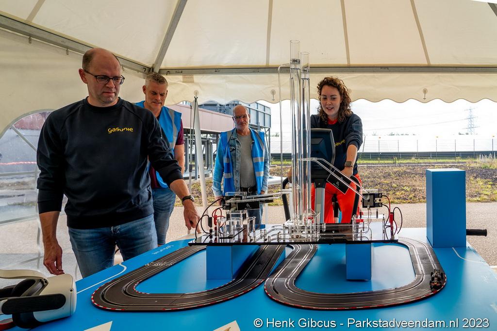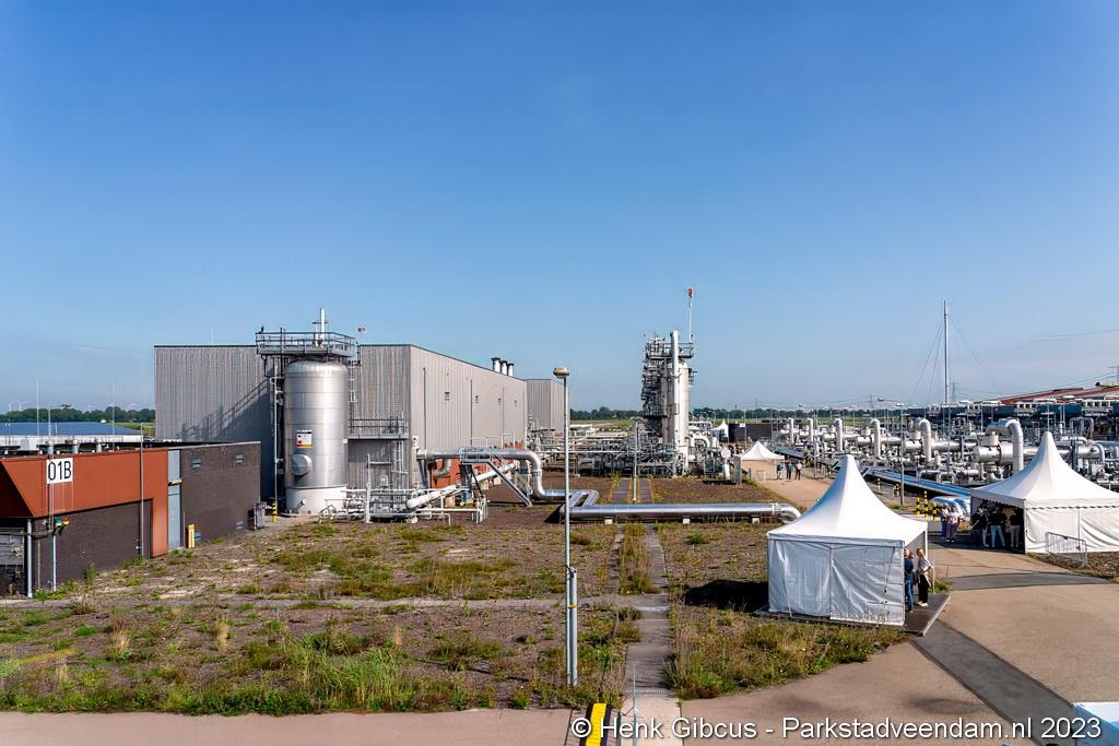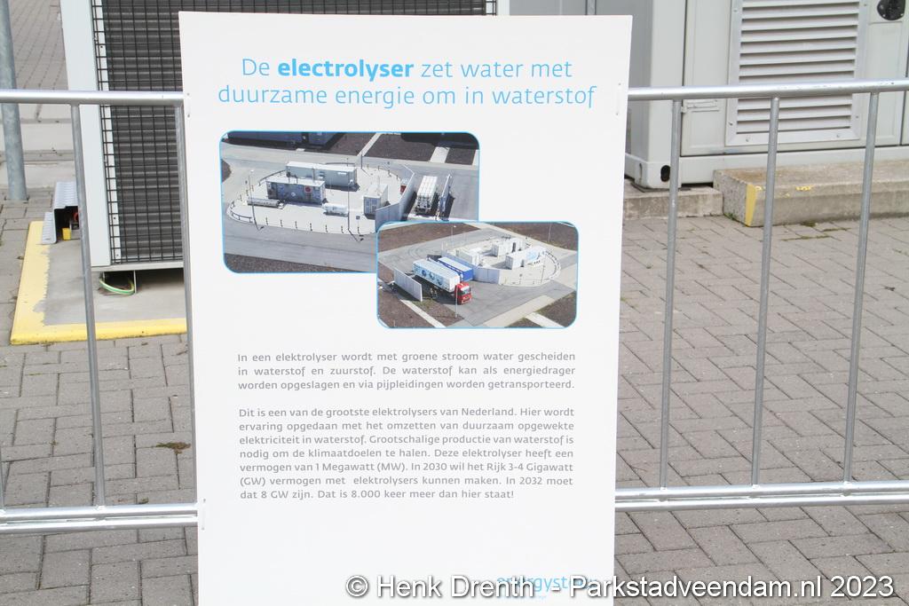 In een electrolizer wordt met groene stroom water gescheiden in waterstof in. Het waterstof kan via pijpleidingen worden getransporteerd. Het betreft een van grootste electrolizers van Nederland. Men kon zelfs in de gebouwen de imposante installaties aanschouwen. Vooral voor techneuten was het een technische walhalla.