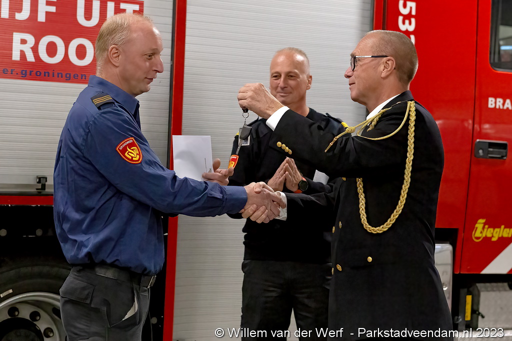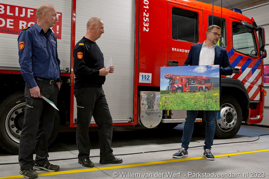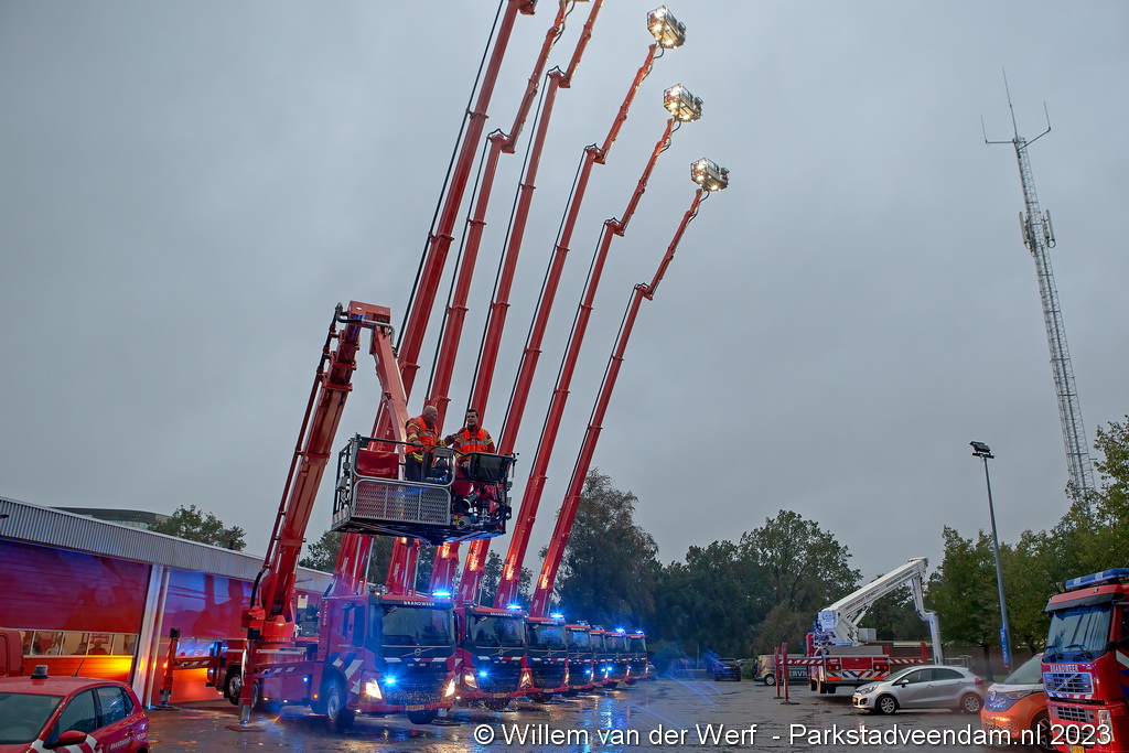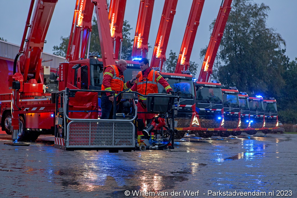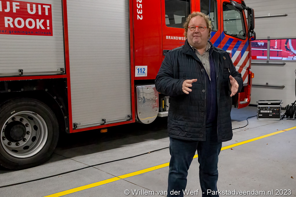 De hoogwerkers werden vandaag gepresenteerd. Dit zou in eerste instantie in het Borgerswold gebeuren, maar gezien de weersomstandigheden werd uitgeweken naar de brandweerkazerne aan de Langeleegte in Veendam. Hier werd een aantal toespraken gehouden. Hierbij was ook Veiligheidsregio Groningen aanwezig. Vervolgens konden de aanwezigen de hoogwerkers, die buiten stonden opgesteld, bekijken. De geplande demonstraties konden helaas vanwege het weer geen doorgang vinden.