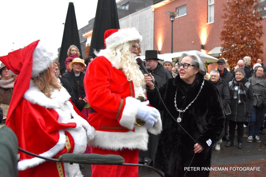 Naast de markt was er op zaterdagmiddag de intocht van de Kerstman met de arrenslee, de Kerstman werd ontvangen door de burgemeester van Veendam Sandra Korthuis.