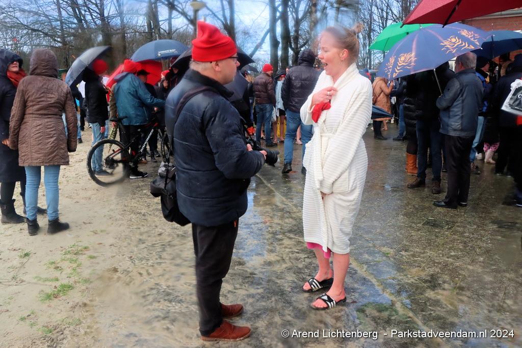 Burgemeester Sandra Korthuis was speciaal naar Veendam gekomen om het startschot te geven. Na de duik was er de mogelijkheid om rond een vuurkorf op te warmen onder het genot van een warm drankje en een oliebol.