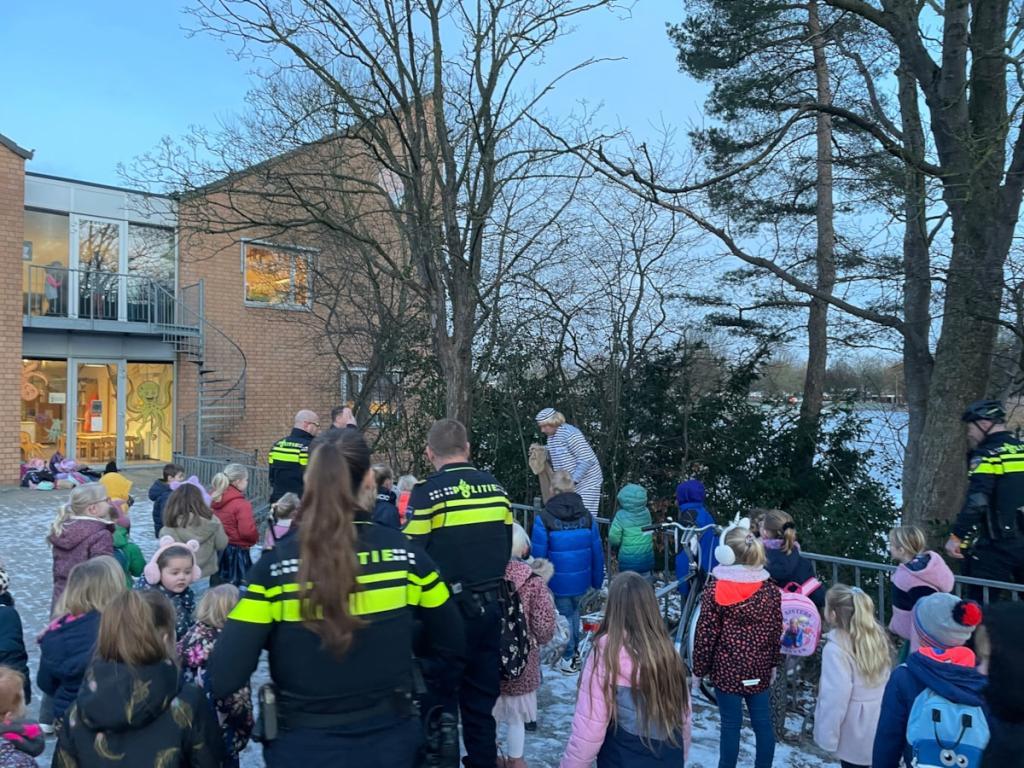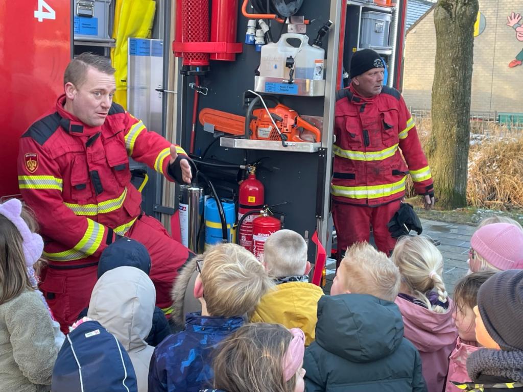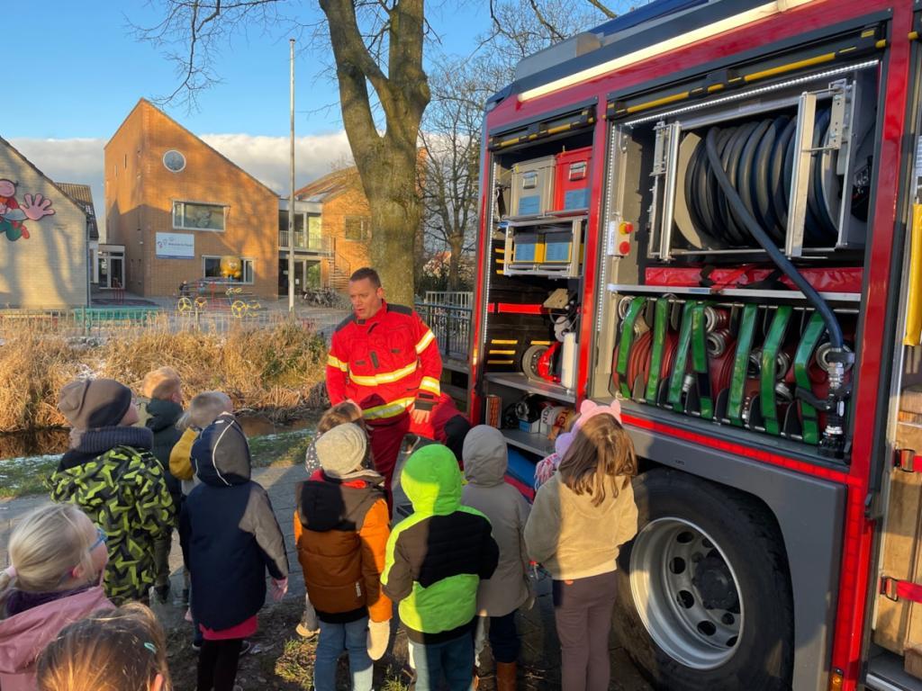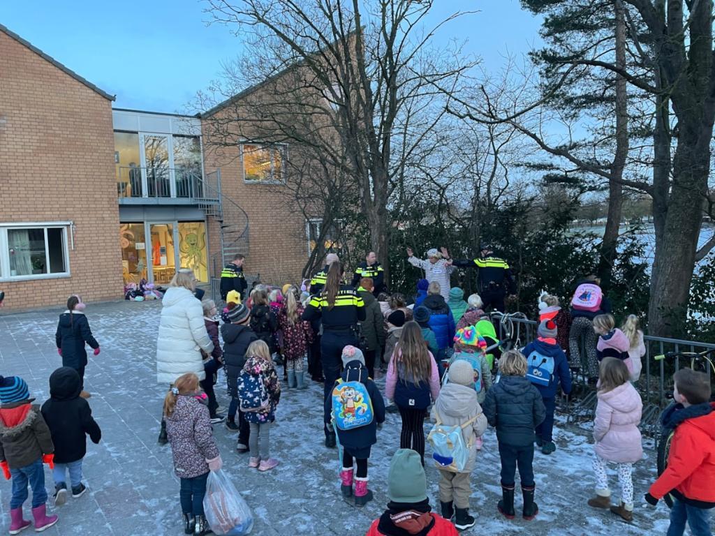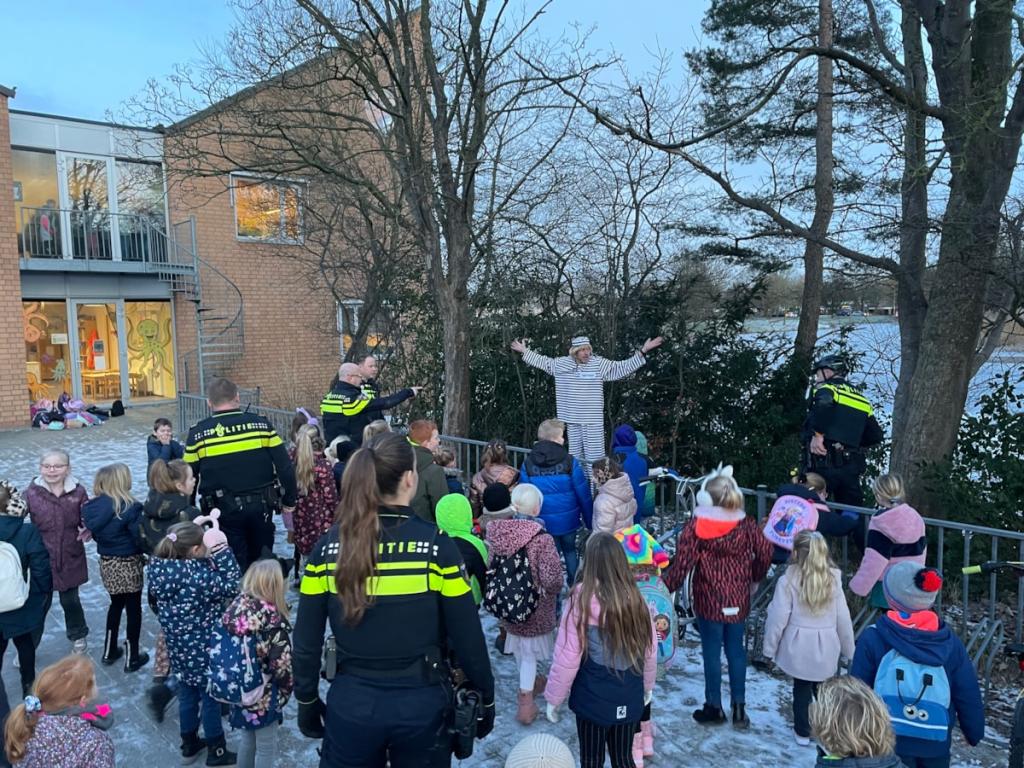 De kinderen van unit 3 werken vanaf de kerstvakantie aan het thema ‘Ik kom je helpen’, dat gaat over hulpdiensten. Gelijk na de kerstvakantie stond er een brandweerauto bij het schoolplein en konden de kinderen de brandweerauto van binnen bekijken, konden ze vragen stelen aan de brandweermannen en mochten ze zelfs spuiten met de brandweerslang. Nu de politie er toch was, konden de kinderen ook mooi gelijk in een politiebusje kijken. In de klas hebben de politieagenten verteld over hun werk en konden de kinderen ook aan hen vragen stellen. Na het brandweerbezoek een tweede onvergetelijk moment voor de kinderen. En omdat ze de politie zo goed hadden geholpen om de boef te vangen kregen ze allemaal een pet met Hulpagent. Een school met meer dan 70 hulpagenten? We denken niet dat een boef daar ooit nog inbreekt.