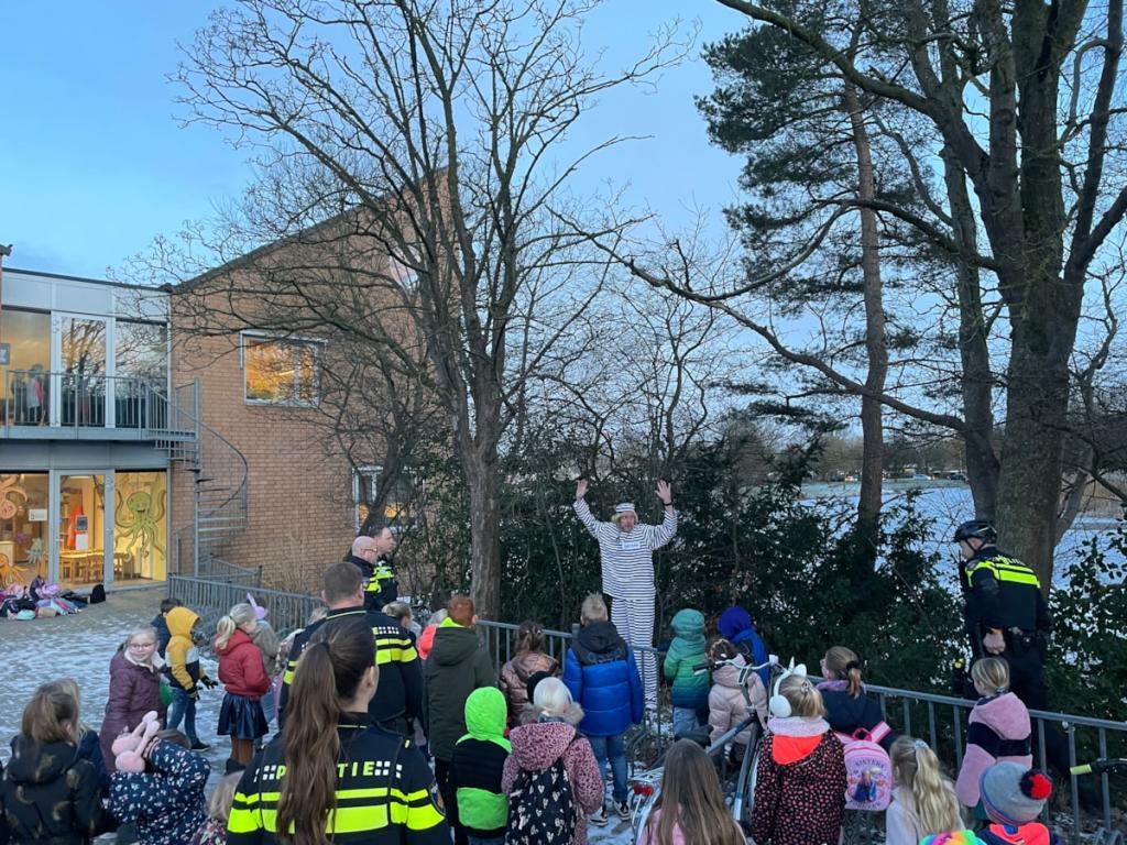 Er waren alweer bekers verdwenen en de boef kon dus niet ver weg zijn. Voor het team en de kinderen van unit 1 (de groepen 1, 2 en 3) zat er maar 1 oplossing op: de politie bellen. Dat de politie deze diefstal zeer serieus nam bleek meteen. Binnen 10 minuten, nog voor de school begon, kwamen er een politieagent op een fiets, twee agenten in een politiebusje en twee agenten in een politieauto met zwaailichten het plein op rijden. Samen met de kinderen van unit 1 werd de jacht op de boef geopend. Deze klom op een onbewaakt moment uit het raam, sprong vervolgens over het hek en probeerde via de waterkant te vluchten. Hierbij had hij niet gerekend op de politie en hun ruim 70 aanwezige hulpagenten. De boef werd ingesloten, in de boeien geslagen en vervolgens met de politieauto afgevoerd. Hiermee kwam een einde aan het mysterie van de verdwenen bekers.