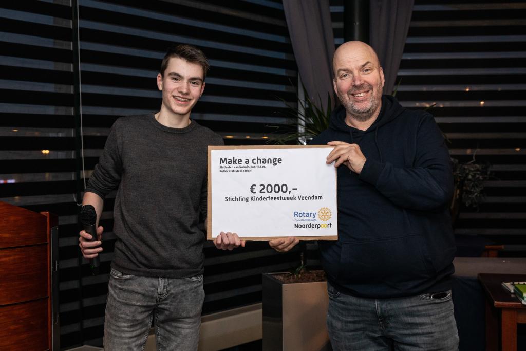 Wat te denken van een telefoontje waarin gevraagd wordt of je een uurtje later in Stadskanaal wilt zijn om een cheque voor de KFW Veendam in ontvangst te nemen? Hoofdrollen in dit verhaal zijn voor Dayanara Dam, Rotary Stadskanaal en het Noorderpoortcollege met het Project “Make A Change”. Bij dit project mochten studenten in het kader van het vak Burgerschap op een maatschappelijk verantwoorde manier geld doneren aan een door hun zelf gekozen doel.