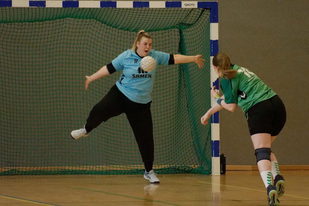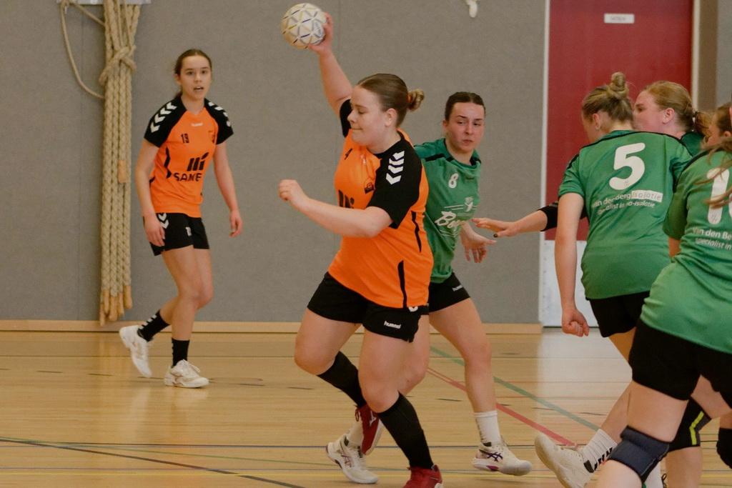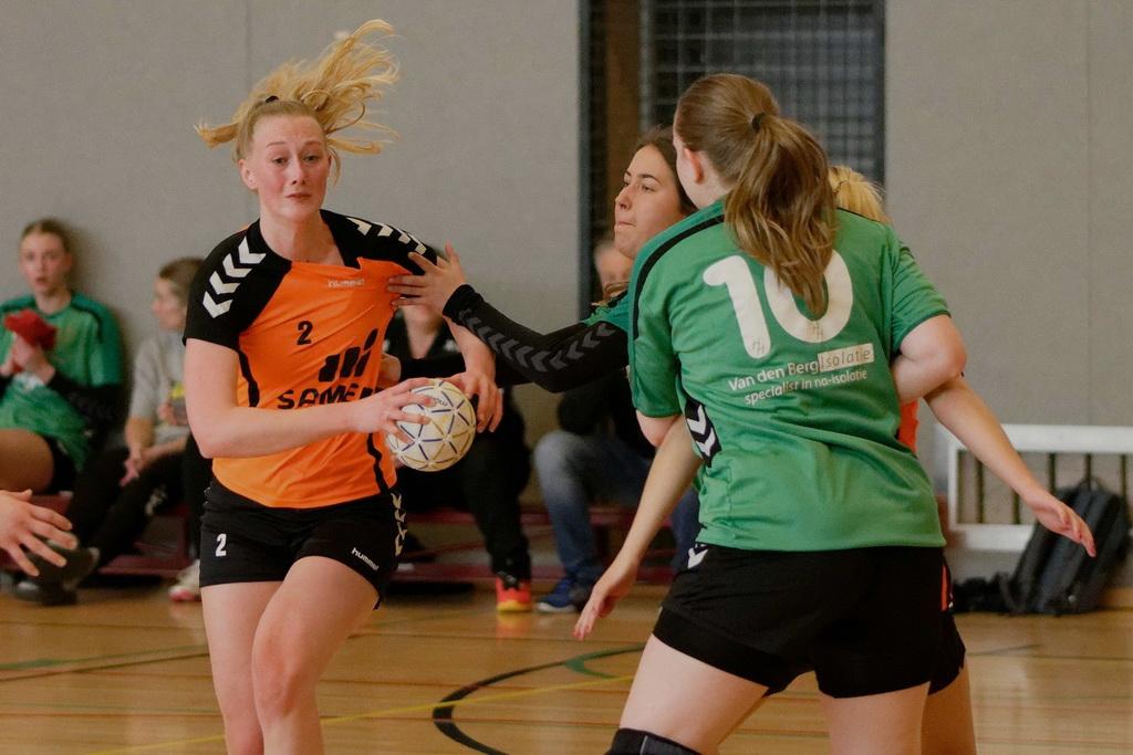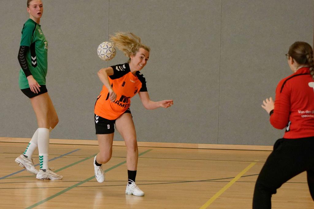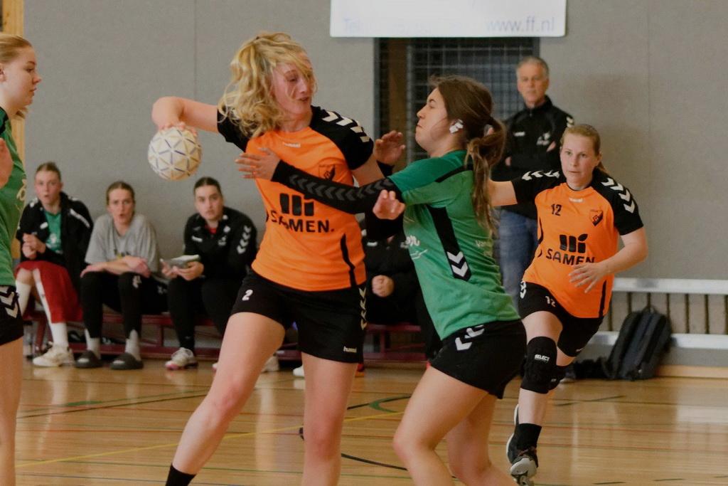 Aan de andere kant begon Aeolus nog meer variatie in de aanval te leggen. Dat leidde o.a. tot een fraaie aanvalsopzet over vier schijven waarna eindstation Annelie Ruiters dat vanaf de cirkel wist te bekronen. Beide ploegen legden een geweldige wedstrijdmentaliteit en teamspirit aan de dag waarbij de tomeloze energie er vanaf spatte. Maar het gebrek aan treffers brak de gasten op terwijl dat aan de andere kant voor Aeolus net iets beter uitpakte. Het feit dat negen speelsters een aandeel hadden in het aantal doelpunten was voor de Oost-Groninger equipe een prettige bijkomstigheid. Tien minuten voor het eindsignaal had Aeolus een klein gaatje van twee treffers weten te slaan (19-17). Dat bleek net voldoende om zich de Drentse gasten van het lijf te houden en liet de thuisploeg uiteindelijk zegevieren met 20-18.