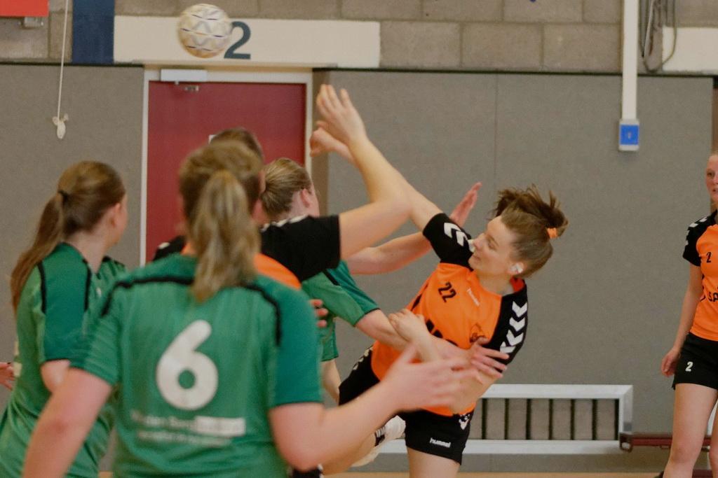 In de eigen Wildervanckhal speelden de handbaldames van Aeolus hun laatste thuiswedstrijd van het seizoen. De thuisploeg boog een kleine achterstand halverwege (11-12) in de 2e helft om in een 20-18 overwinning.