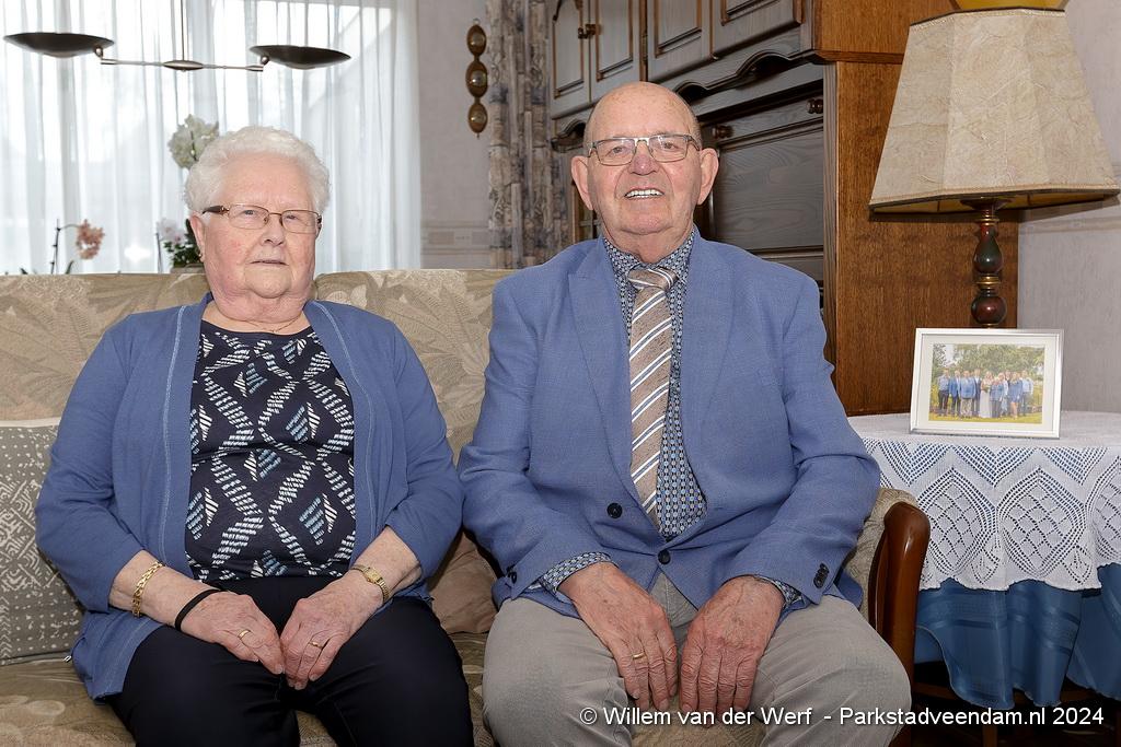 Het echtpaar respectievelijk 83 en 81 jaar leerde elkaar op de kermis in Vlagtwedde bij Beijering kennen. Uit het huwelijk kwam een zoon en dochter en inmiddels 6 kleinkinderen. Het werk als automonteur bracht hun om te wonen naar Veendam. Fietsen en kaartjes borduren behoren tot hun hobby`s.