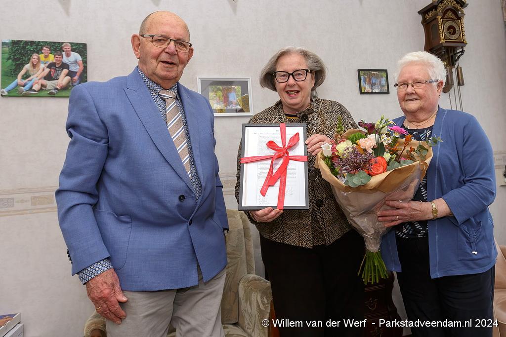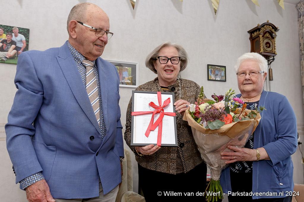 Woensdag (10 april) zijn de heer en mevrouw Koning uit Veendam 60 jaar getrouwd. Burgemeester Sandra Korthuis feliciteerde het echtpaar namens de gemeente Veendam woensdagmiddag persoonlijk op hun huisadres. Dit ging vergezeld van een fleurig boeket bloemen en een kopie van de originele trouwakte.