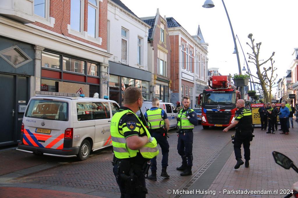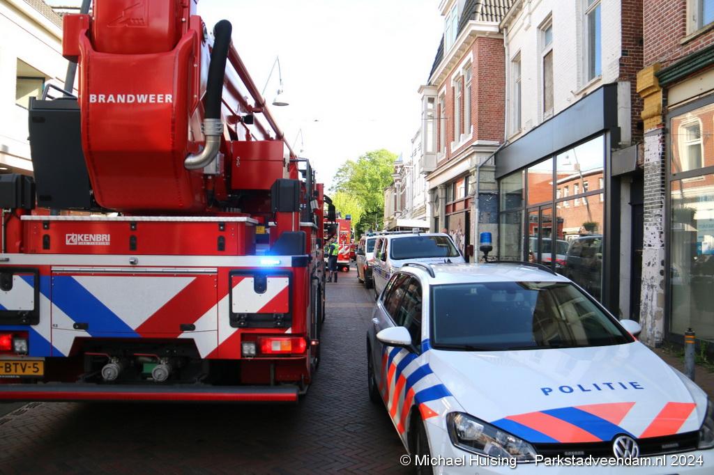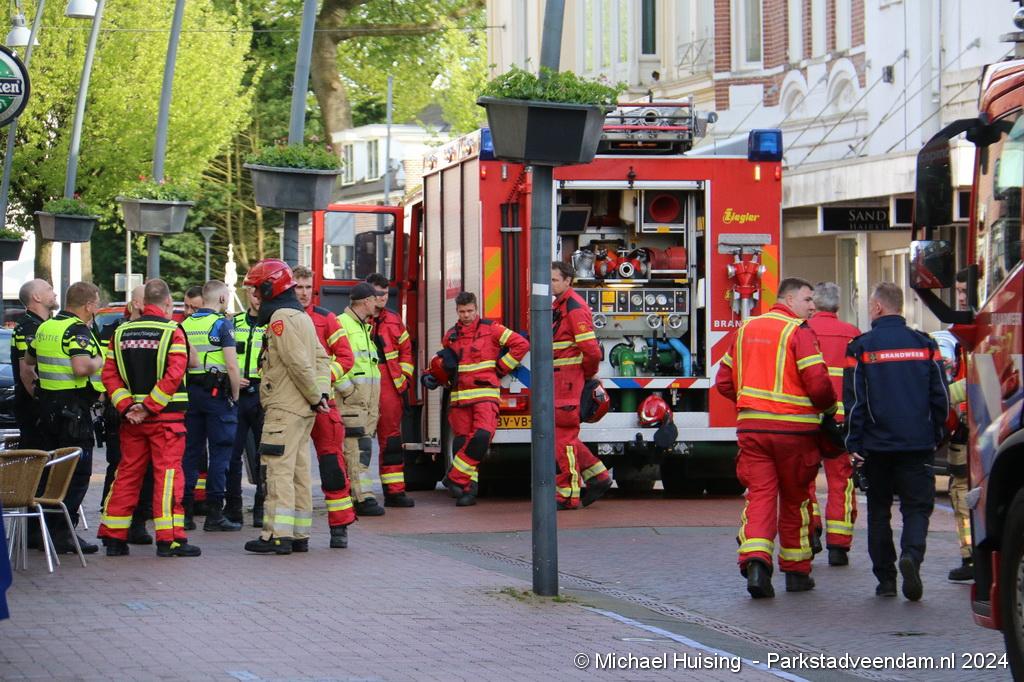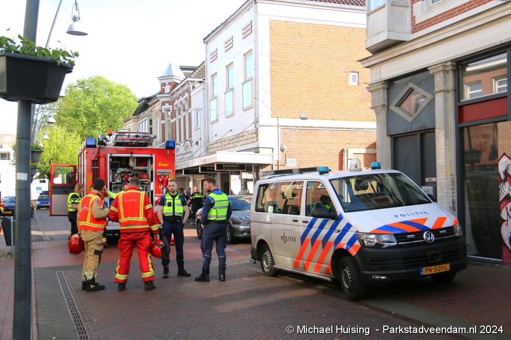 Rond de klok van 17.30 uur werd brandweer Veendam vrijdag gealarmeerd voor een winkelbrand in de Kerkstraat. Ter plaatse was de politie en handhaving reeds met een aantal voertuigen ter plaatse bij een leegstaand vervallen pand.