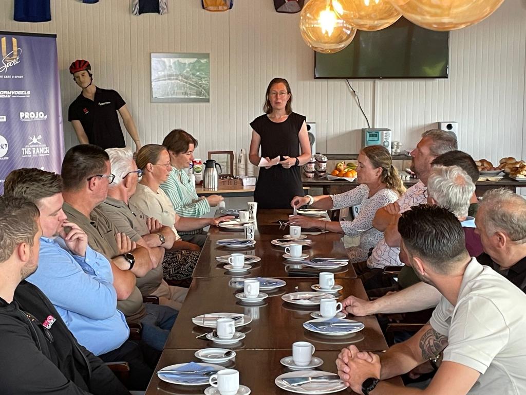Na het ontbijt kregen de sponsoren een rondleiding door het Wielerhome en over de Wielerbaan in het Henk Nienhuis Stadion.