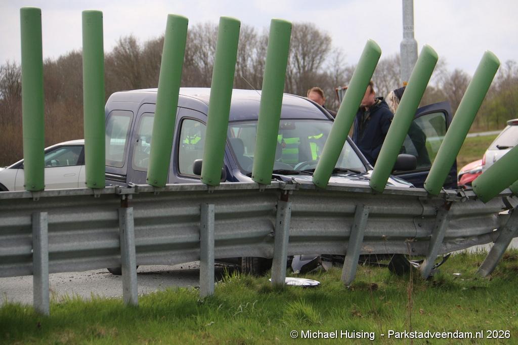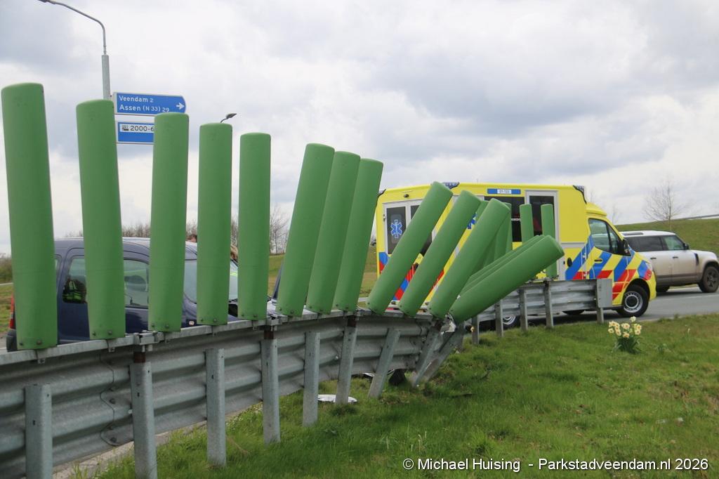 Auto botst op vangrail op de N366 bij Veendam