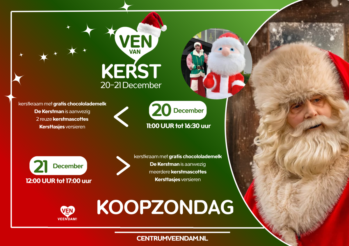 Na de sfeervolle winterkerstfair van afgelopen weekend bruist het centrum van Veendam ook komend weekend weer van de kerstactiviteiten. Op zaterdag 20 en zondag 21 december is de Kerstman opnieuw aanwezig om lekkernijen uit te delen aan jong en oud.