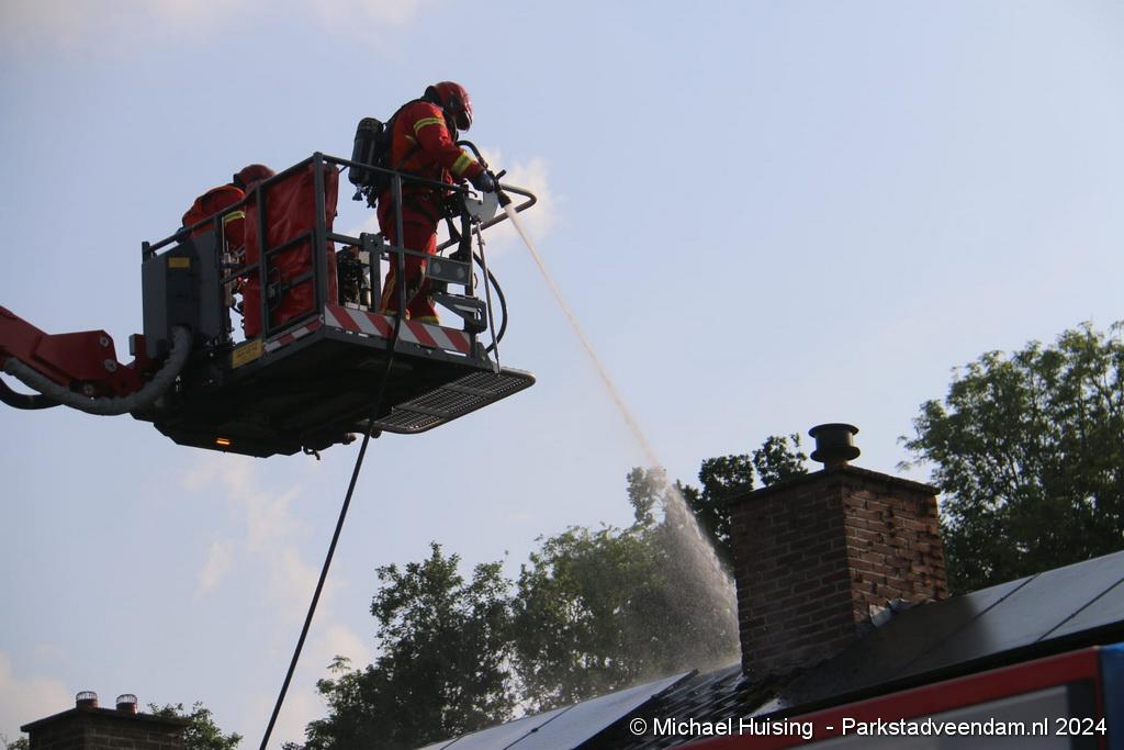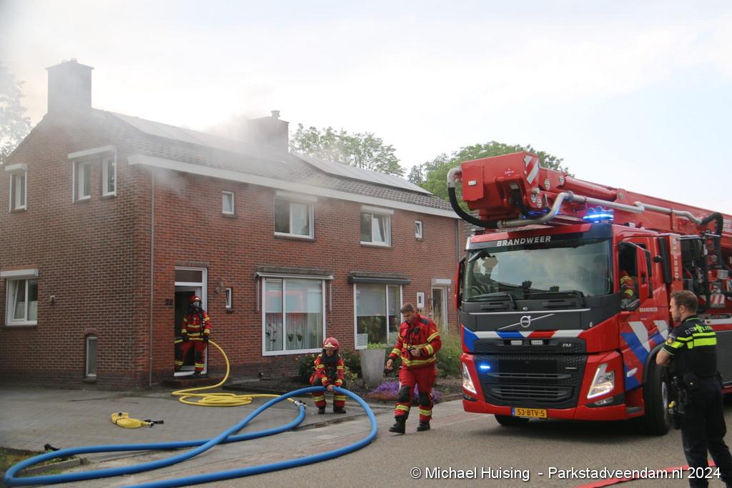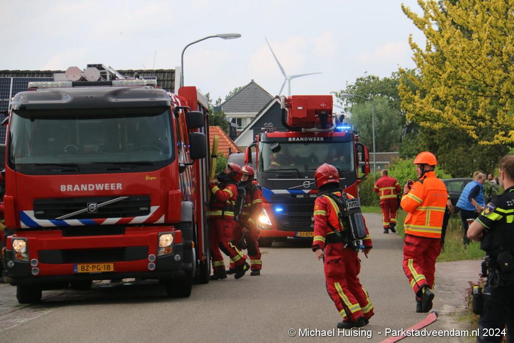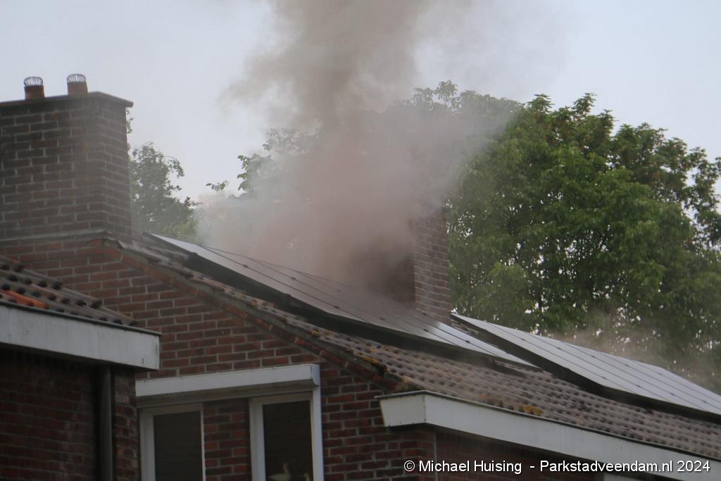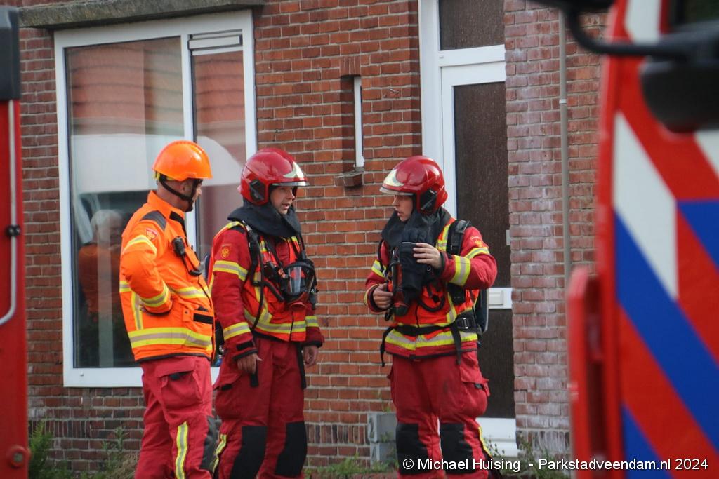 De hoogwerker van Veendam werd in de tussentijd opgesteld waarna er van buitenaf ook een blussing kon worden gedaan. De woning liep forse schade op, Salvage kwam ter plaatse om de bewoners bij te staan met de afwikkeling van de brand.