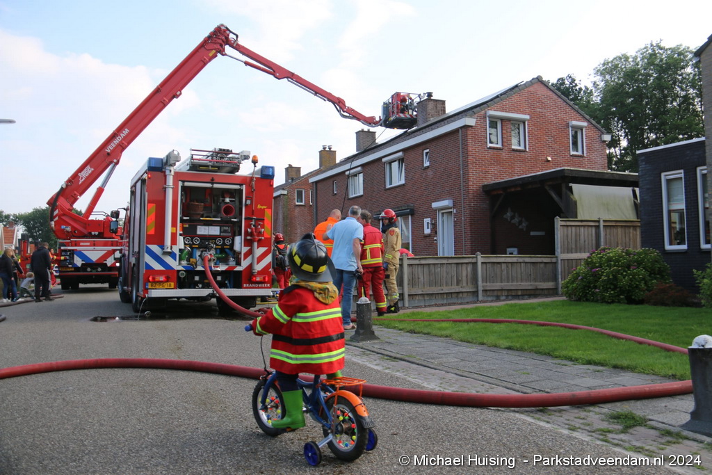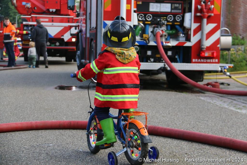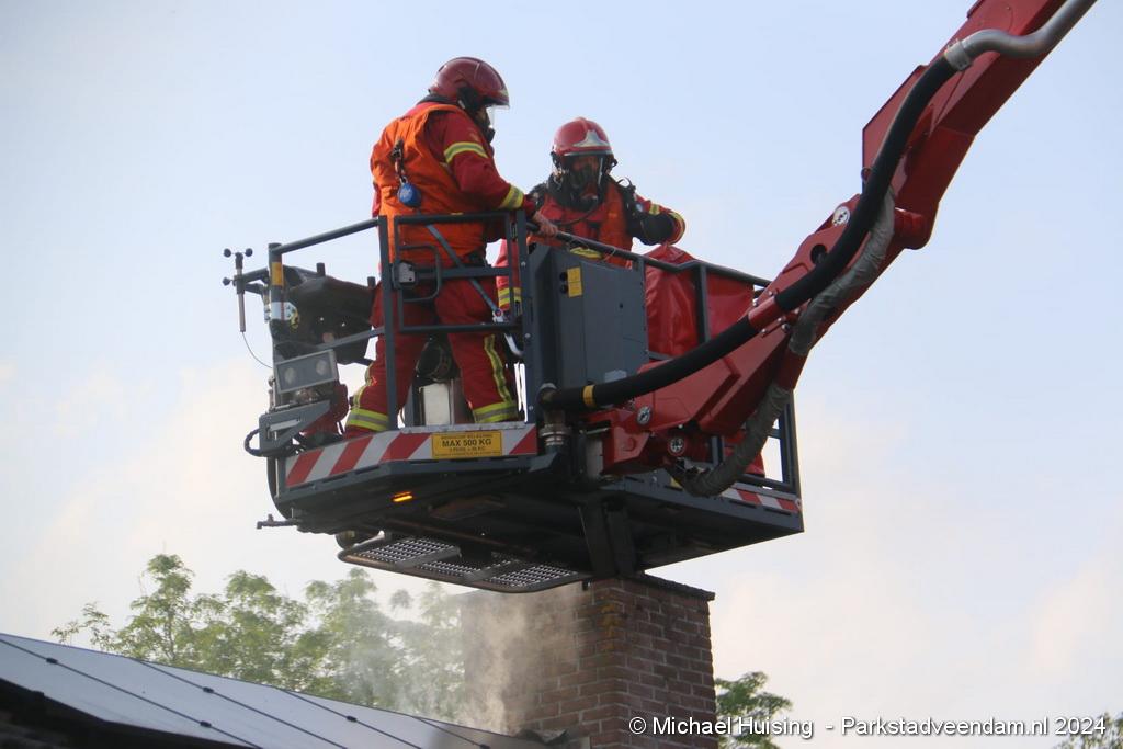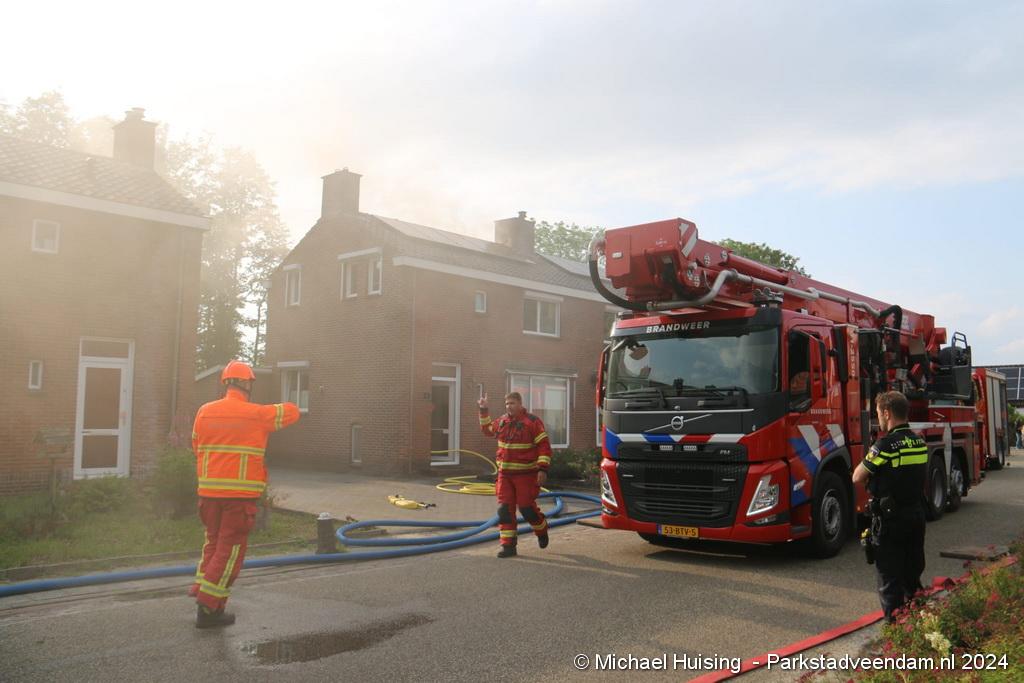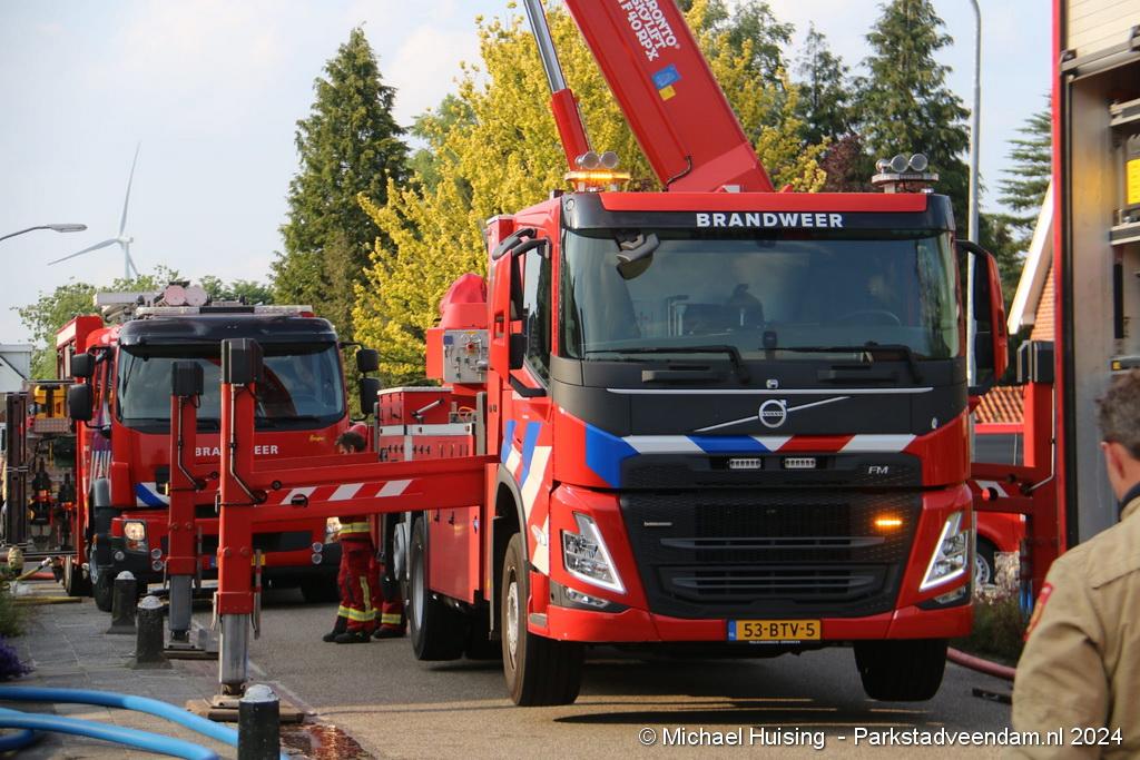 De hoogwerker van Veendam werd in de tussentijd opgesteld waarna er van buitenaf ook een blussing kon worden gedaan. De woning liep forse schade op, Salvage kwam ter plaatse om de bewoners bij te staan met de afwikkeling van de brand.